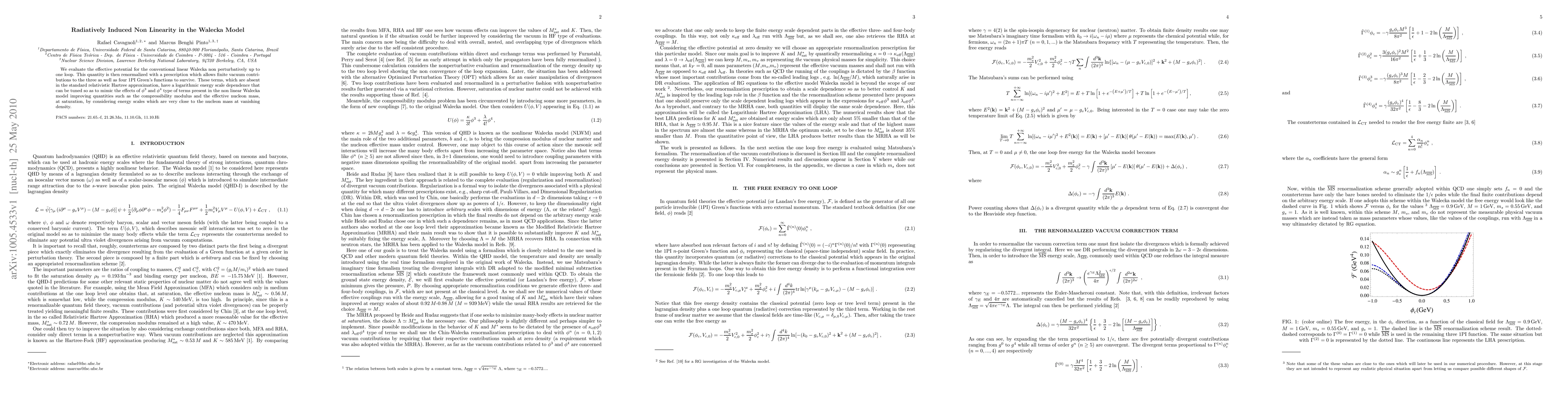 We evaluate the effective potential for the conventional linear Walecka non perturbatively up to one loop. This quantity is then renormalized with a prescription which allows finite vacuum contributions to the three as well as four 1PI Green's functions to survive. These terms, which are absent in the standard relativistic Hartree approximation, have a logarithmic energy scale dependence that can be tuned so as to mimic the effects of phi3 and phi4 type of terms present in the non linear Walecka model improving quantities such as the compressibility modulus and the effective nucleon mass, at saturation, by considering energy scales which are very close to the nucleon mass at vanishing density.