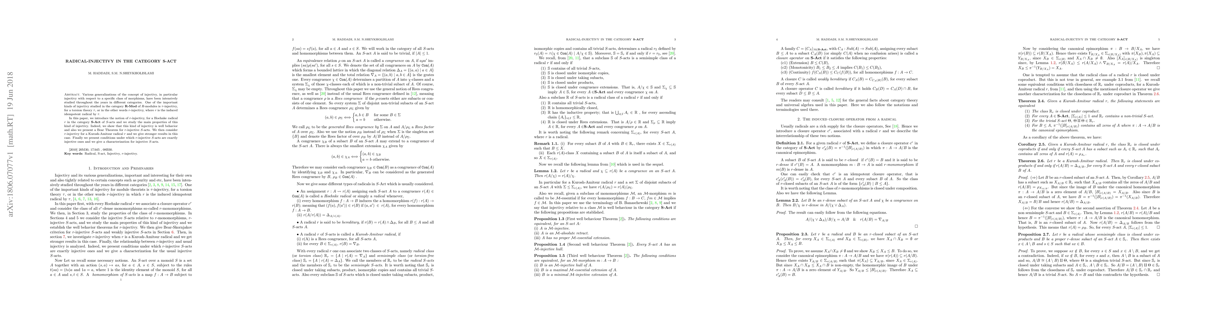 Various generalizations of the concept of injectivy, in particular injectivy with respect to a specific class of morphisms, have been intensively studied throughout the years in different categories. One of the important kinds of injectivy studied in the category R-Mod of R-modules is ${\tau}$-injectivy, for a torsion theory ${\tau}$, or in the other words r-injectivy, where r is the induced idempotent radical by ${\tau}$. In this paper, we introduce the notion of r-injectivy, for a Hoehnke radical r in the category S-Act of S-acts and we study the main properties of this kind of injectivy. Indeed, we show that this kind of injectivy is well behavior and also we present a Bear Theorem for r-injective S-acts. We then consider r-injectivy for a Kurosh-Amitsur radical r and we give stronger results in this case. Finally we present conditions under which r-injective S-acts are exactly injective ones and we give a characterization for injective S-acts
