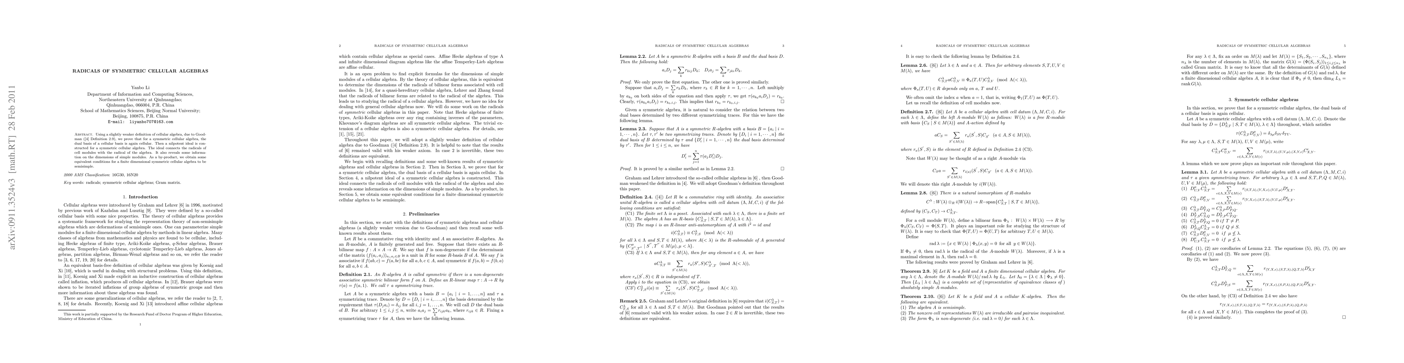 Let A be a finite dimensional symmetric cllular algebras. We construct a nilpotent ideal in A. The ideal connects the radicals of cell modules with the radical of the algebra. It also reveals some information on the dimensions of simple modules of A.