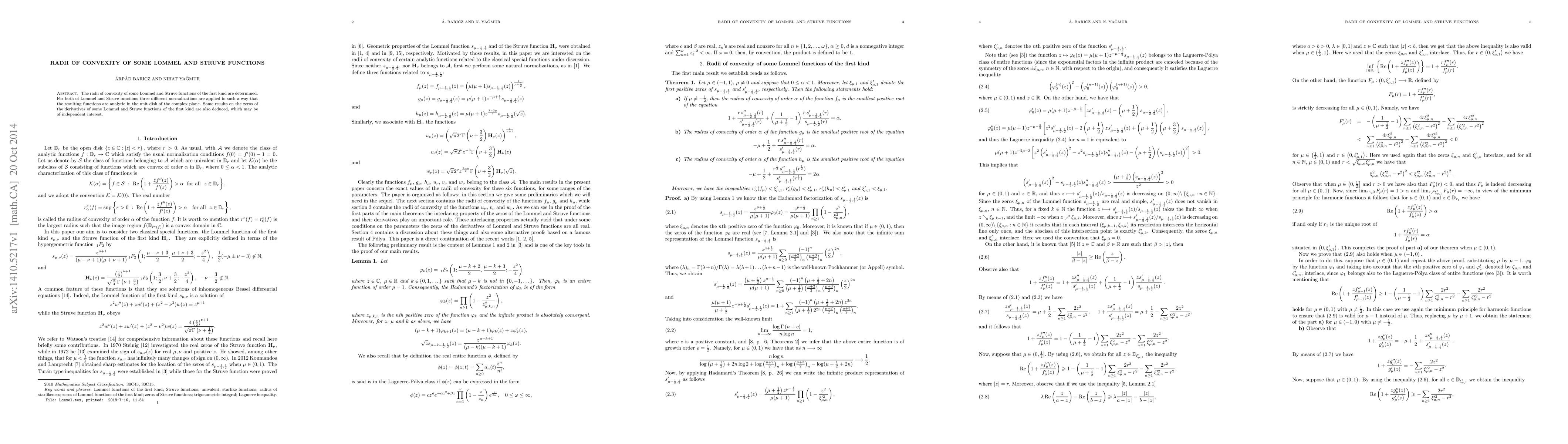 This paper determines the radii of convexity for Lommel and Struve functions of the first kind under three different normalizations, ensuring analyticity in the unit disk. It also derives results on the zeros of the derivatives of these functions, which may hold independent interest.
