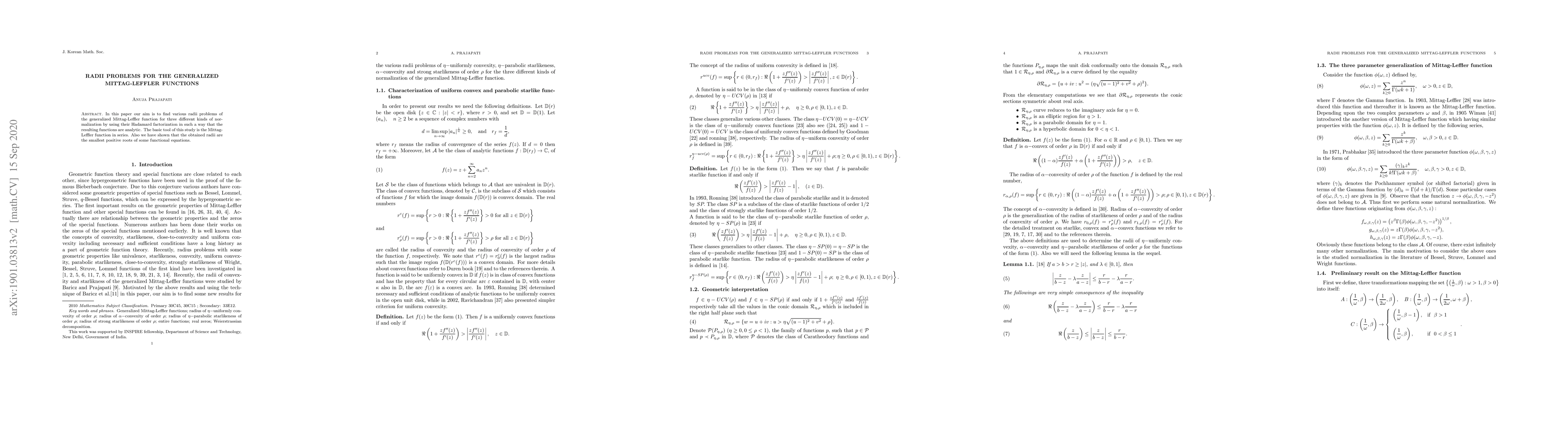 This paper investigates the radii of $\eta-$uniform convexity, $\alpha-$convexity, $\eta-$parabolic starlikeness, and strong starlikeness of order $\rho$ for the generalized Mittag-Leffler function under different normalizations, utilizing Hadamard factorization. The study concludes that the derived radii are the smallest positive roots of associated functional equations.