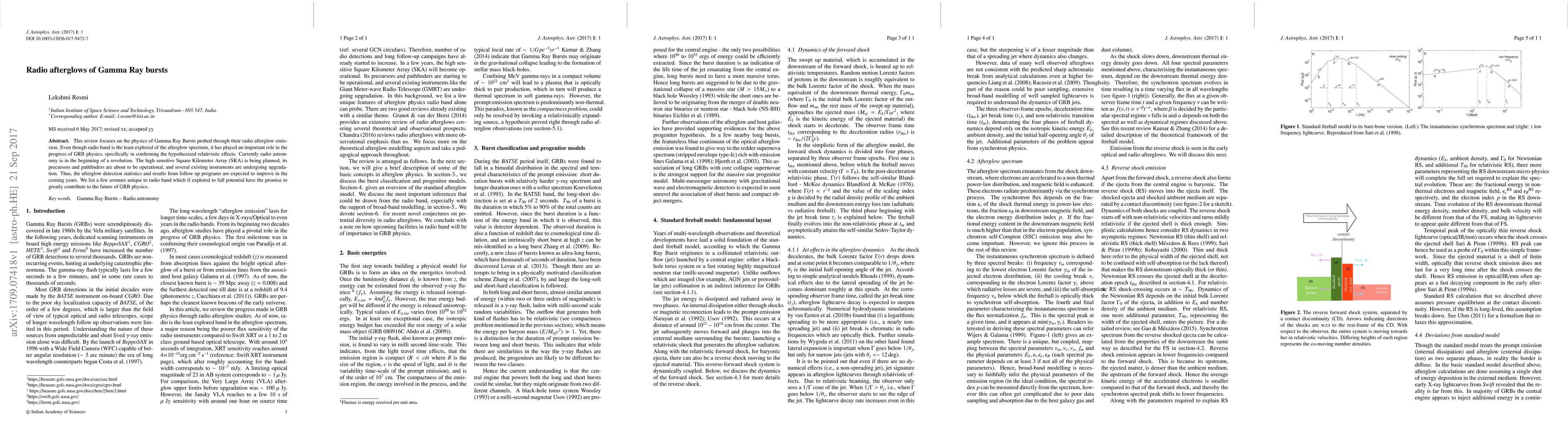 This review explores the physics of Gamma Ray Bursts (GRBs) through their radio afterglow emissions, highlighting the significance of the radio band in confirming relativistic effects and noting the upcoming advancements in radio astronomy with the Square Kilometer Array (SKA). Future improvements in detection and follow-up programs promise significant contributions to GRB physics.