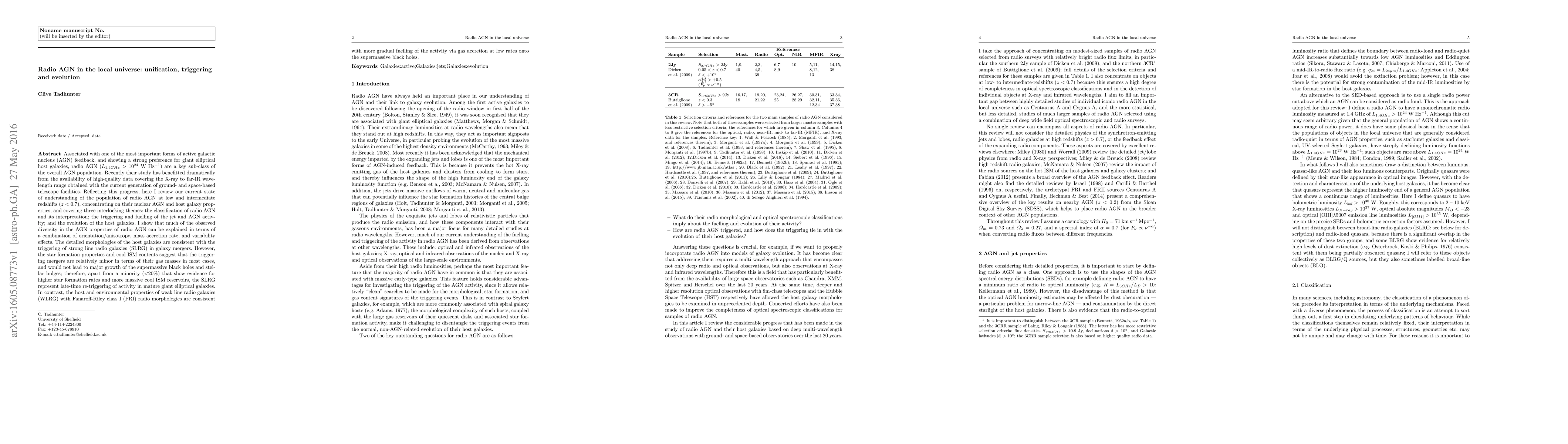 This paper reviews the characteristics and evolution of radio AGN in the local universe, focusing on their classification, the mechanisms triggering their activity, and the impact on host galaxies. It suggests that most radio AGN are reactivated in mature elliptical galaxies, while weak-line radio galaxies show gradual fueling through low-rate gas accretion.