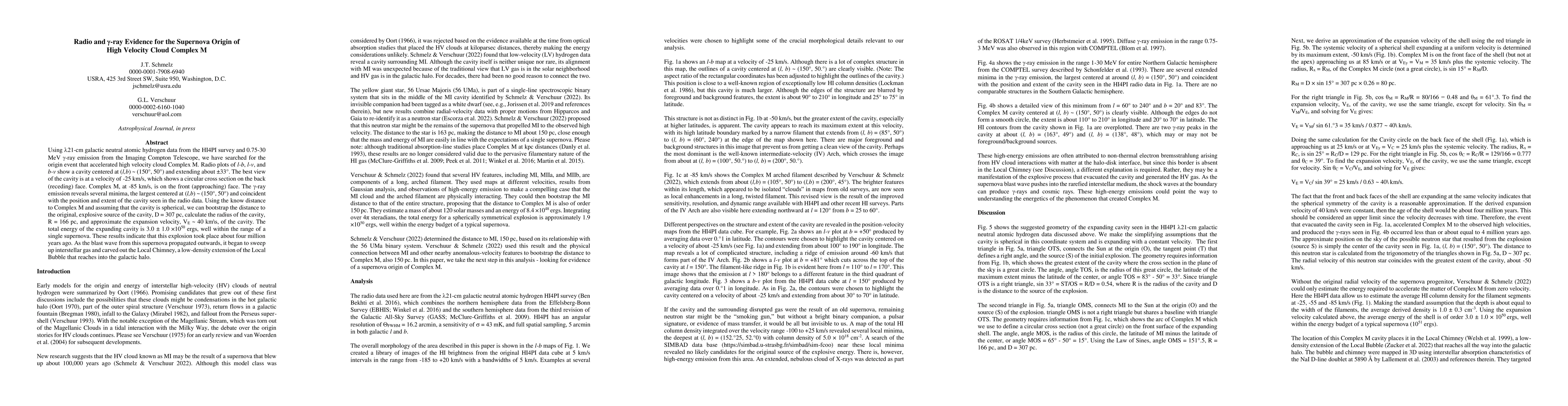 This paper identifies a supernova as the origin of the high velocity cloud Complex M, using radio and gamma-ray data to reveal a cavity indicative of a supernova explosion approximately four million years ago, with an energy release consistent with a single supernova event.