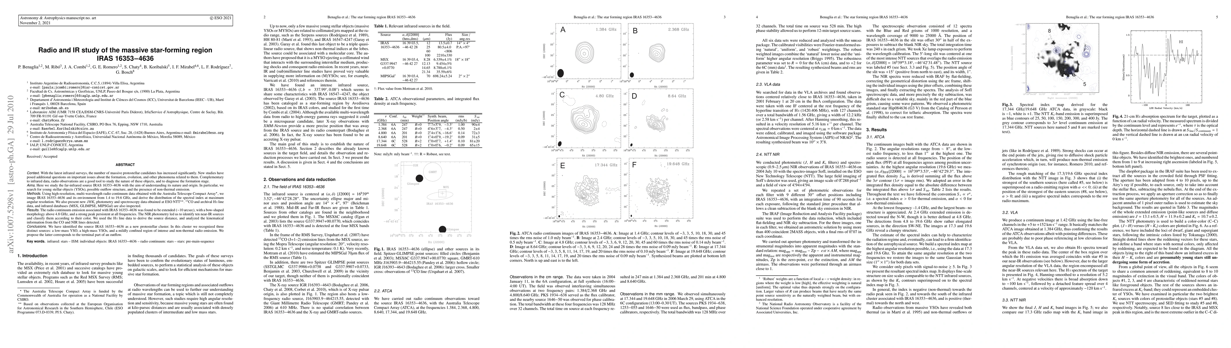 This study uses radio and infrared observations to investigate the massive star-forming region IRAS 16353-4636, identifying it as a new protostellar cluster with three distinct sources: a low-mass YSO, high-mass YSOs, and a region of non-thermal radio emission likely linked to an outflow.