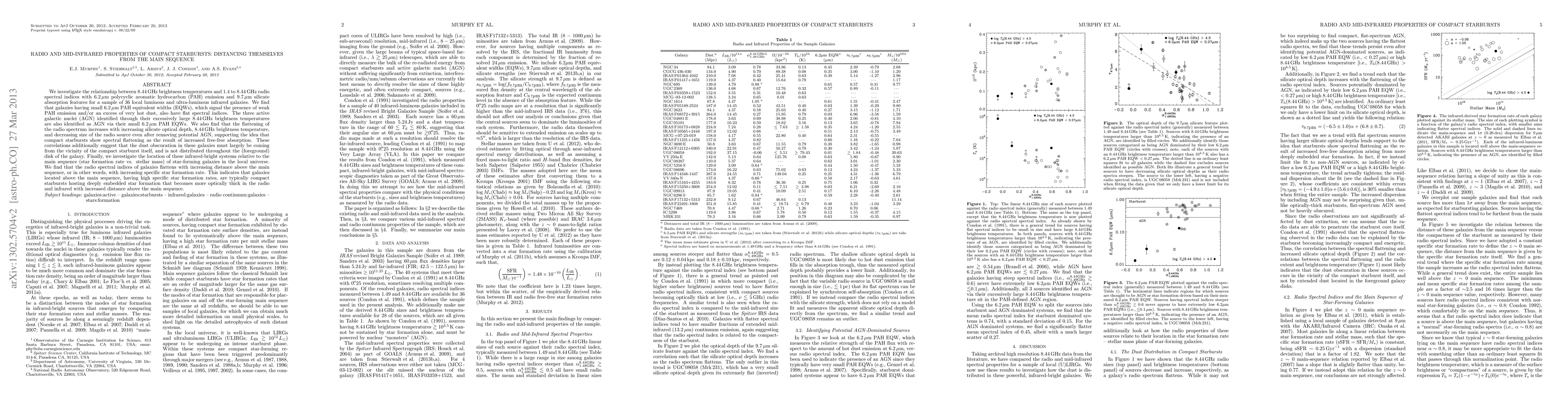 This paper explores the radio and mid-infrared properties of compact starbursts, finding that galaxies with weak PAH emission and hot dust exhibit flatter radio spectra, suggesting increased free-free absorption. These starbursts, located above the main sequence of star-forming galaxies, show higher specific star formation rates and more optically thick star formation.