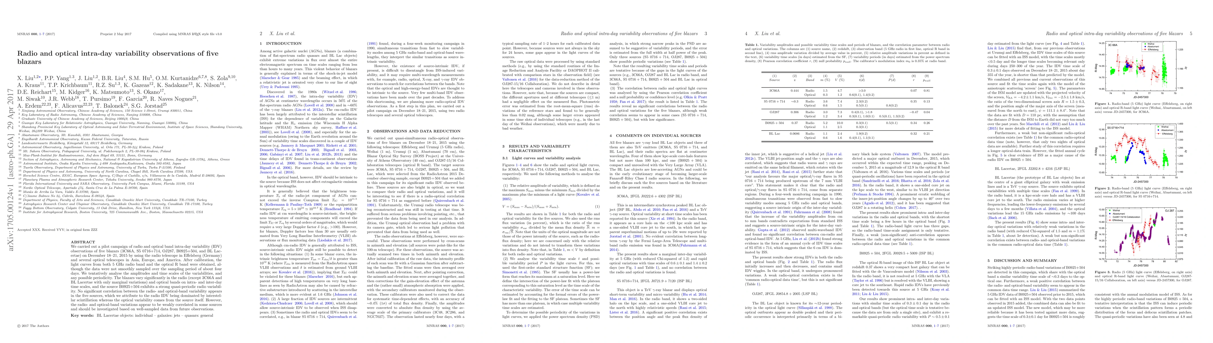 This paper reports on intra-day variability observations of five blazars in radio and optical bands, revealing significant variability in most sources, with no strong correlation between radio and optical variations, likely due to different origins of the variabilities. Future well-sampled data may reveal weaker correlations.