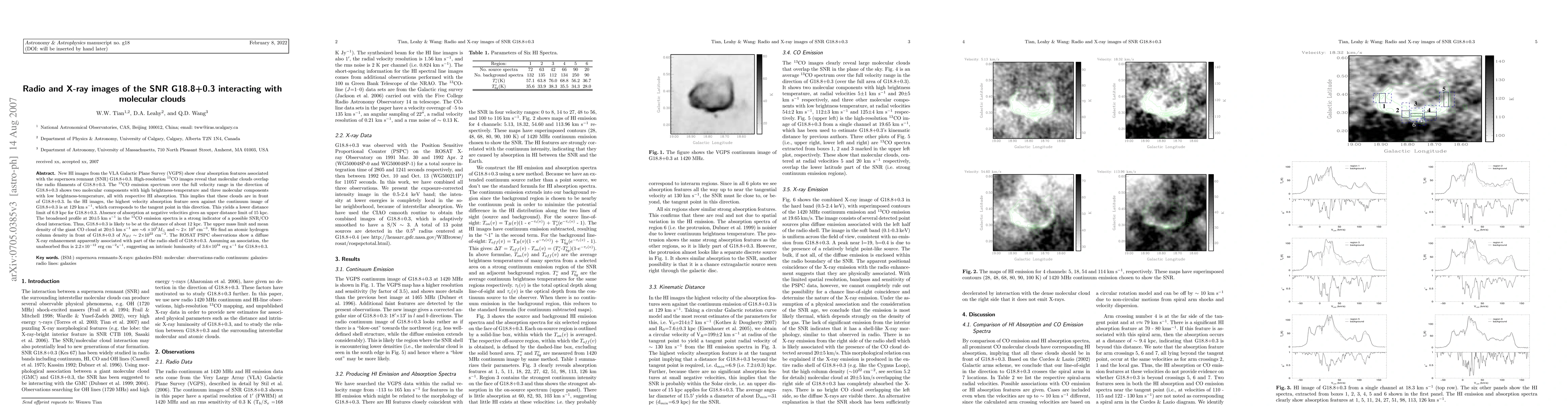 The study uses radio and X-ray images to investigate the interaction between supernova remnant G18.8+0.3 and molecular clouds, providing a distance limit of approximately 12 kpc.