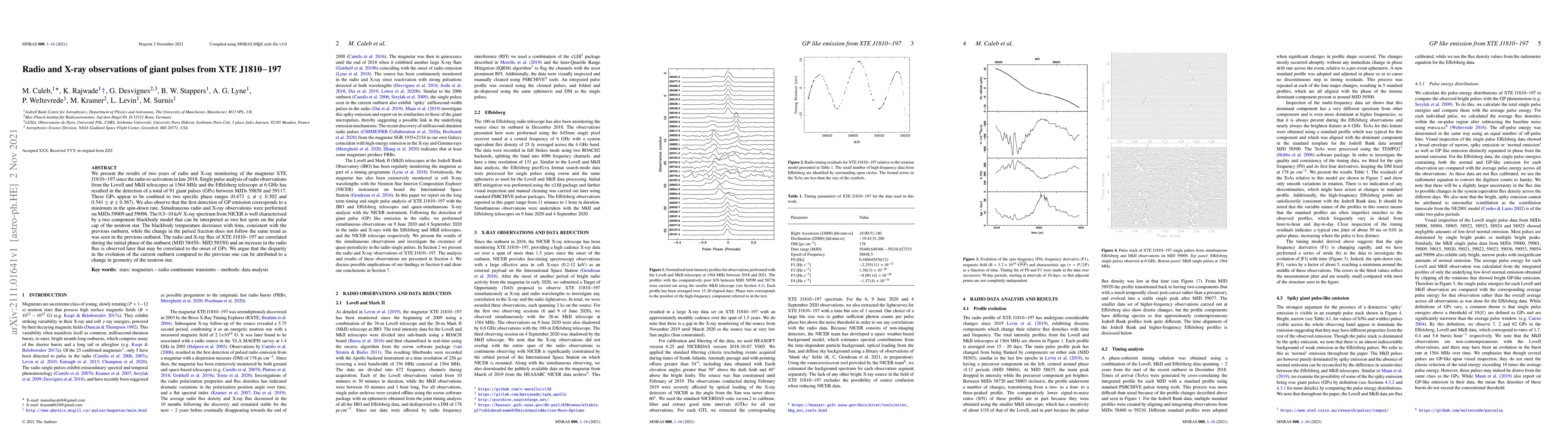This study reports two years of radio and X-ray observations of the magnetar XTE J1810-197, revealing 91 giant pulses confined to specific phase ranges and correlating radio and X-ray flux changes. The X-ray spectrum is characterized by a two-component blackbody model, suggesting two polar cap hot spots, with a decreasing temperature over time.