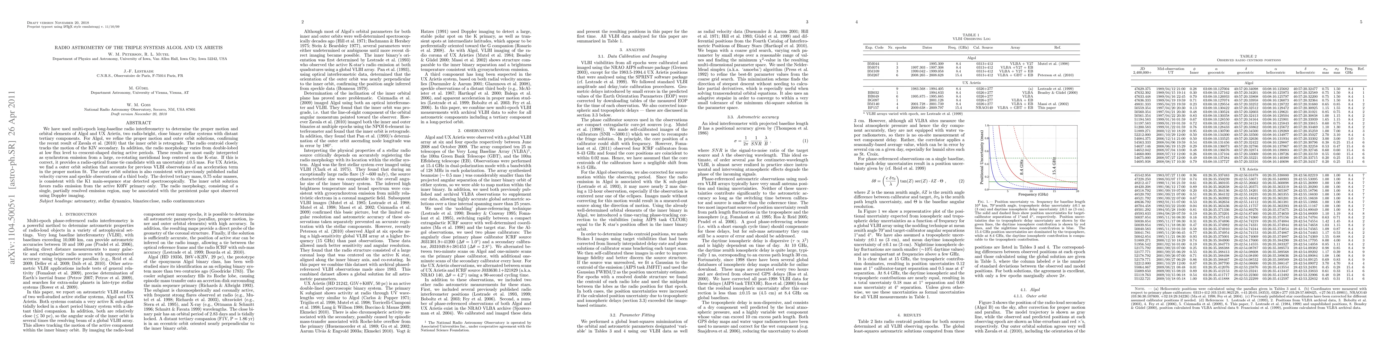 This research paper uses radio interferometry to study the binary systems Algol and UX Arietis, revealing new insights into their inner and outer orbits, proper motions, and radio emission mechanisms.
