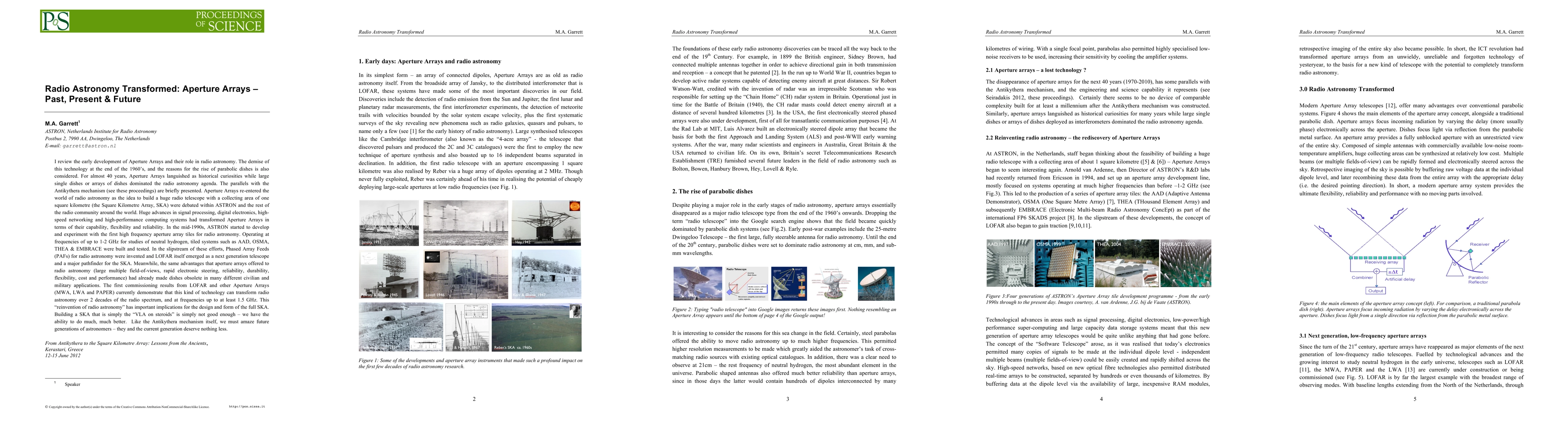 I review the early development of Aperture Arrays and their role in radio astronomy. The demise of this technology at the end of the 1960's, and the reasons for the rise of parabolic dishes is also considered. The parallels with the Antikythera mechanism (see these proceedings) as a lost technology are briefly presented. Aperture Arrays re-entered the world of radio astronomy as the idea to build a huge radio telescope with a collecting area of one square kilometre (the Square Kilometre Array, SKA) arose. Huge ICT technology advances had transformed Aperture Arrays in terms of their capability, flexibility and reliability. In the mid-1990s, ASTRON started to develop and experiment with the first high frequency aperture array tiles for radio astronomy - AAD, OSMA, THEA & EMBRACE. In the slipstream of these efforts, Phased Array Feeds (PAFs) for radio astronomy were invented and LOFAR itself emerged as a next generation telescope and a major pathfinder for the SKA. Meanwhile, the same advantages that aperture arrays offered to radio astronomy had already made dishes obsolete in many different civilian and military applications. The first commissioning results from LOFAR and other Aperture Arrays (MWA, LWA and PAPER) currently demonstrate that this kind of technology can transform radio astronomy over 2 decades of the radio spectrum, and at frequencies up to at least 1.5 GHz. This "reinvention of radio astronomy" has important implications for the design and form of the full SKA. Building a SKA that is simply the "VLA on steroids" is simply not good enough. Like the Antikythera mechanism itself, we must amaze future generations of astronomers - they and the current generation deserve nothing less.