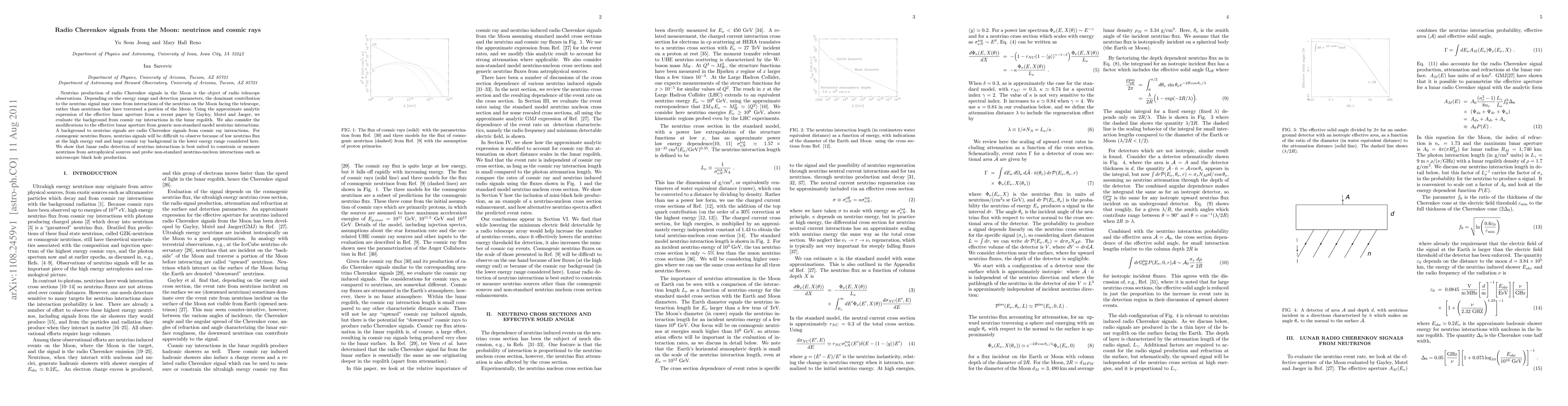 This paper investigates radio Cherenkov signals from the Moon, focusing on neutrino detection via radio telescopes. It finds that lunar interactions may dominate the neutrino signal, and evaluates the cosmic ray background from lunar regolith interactions, highlighting the challenge of observing high-energy neutrinos due to cosmic ray interference.