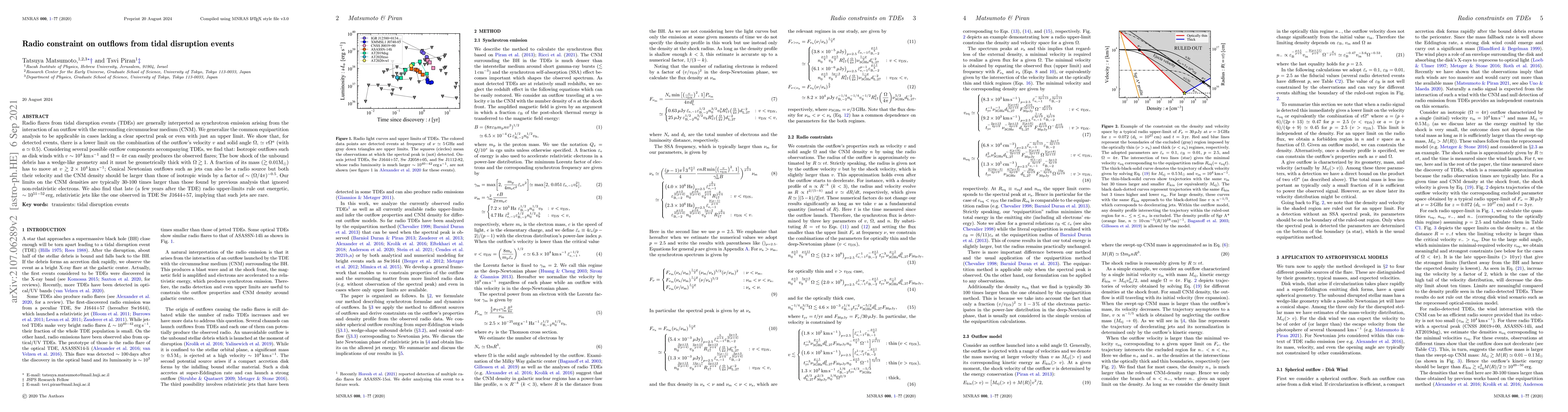 Radio flares from tidal disruption events (TDEs) are generally interpreted as synchrotron emission arising from the interaction of an outflow with the surrounding circumnuclear medium (CNM). We generalize the common equipartition analysis to be applicable in cases lacking a clear spectral peak or even with just an upper limit. We show that, for detected events, there is a lower limit on the combination of the outflow's velocity $v$ and solid angle $\Omega$, $\simeq v\Omega^{a}$ (with $a \simeq 0.5$) that constrains the outflow's properties. Considering several possible outflow components accompanying TDEs, we find that: Isotropic outflows such as disk winds with $v\sim10^4\,\rm km\,s^{-1}$ and $\Omega = 4 \pi$ can easily produces the observed flares; The bow shock of the unbound debris has a wedge-like geometry and it must be geometrically thick with $\Omega\gtrsim1$ and a fraction of its mass ($\gtrsim 0.01 \,M_{\odot}$), has to move at $v \gtrsim 2 \times 10^4\,\rm km\,s^{-1}$; Conical Newtonian outflows such as jets can also be a radio source but both their velocity and the CNM density should be larger than those of isotropic winds by a factor of $\sim(\Omega/4\pi)^{-0.5}$. Our limits on the CNM densities are typically 30-100 times larger than those found by previous analysis that ignored non-relativistic electrons that do not emit synchrotron radiation. We show that unless $v$ and $\Omega$ are known radio observation alone cannot determine the CNM density. We also find that late (a few years after the TDE) radio upper-limits rule out energetic, $\sim 10^{51-52}\,\rm erg$, relativistic jets like the one observed in TDE Sw J1644+57, implying that such jets are rare.