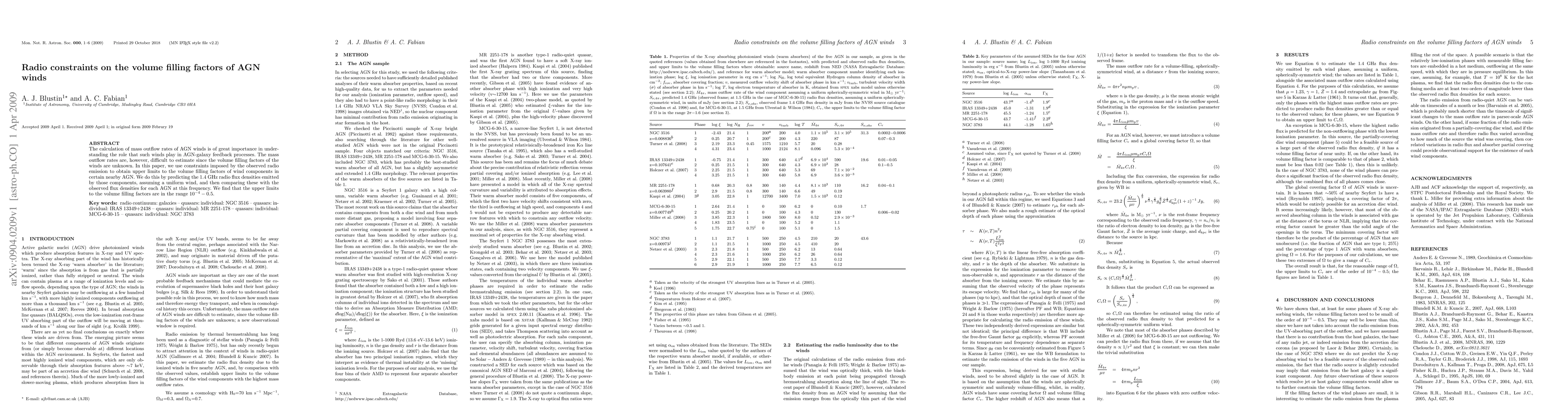 This paper uses radio emission constraints to estimate upper limits for the volume filling factors of AGN winds, finding values between 10^{-4} and 0.5. These estimates help understand the mass outflow rates and the role of AGN winds in AGN-galaxy feedback processes.