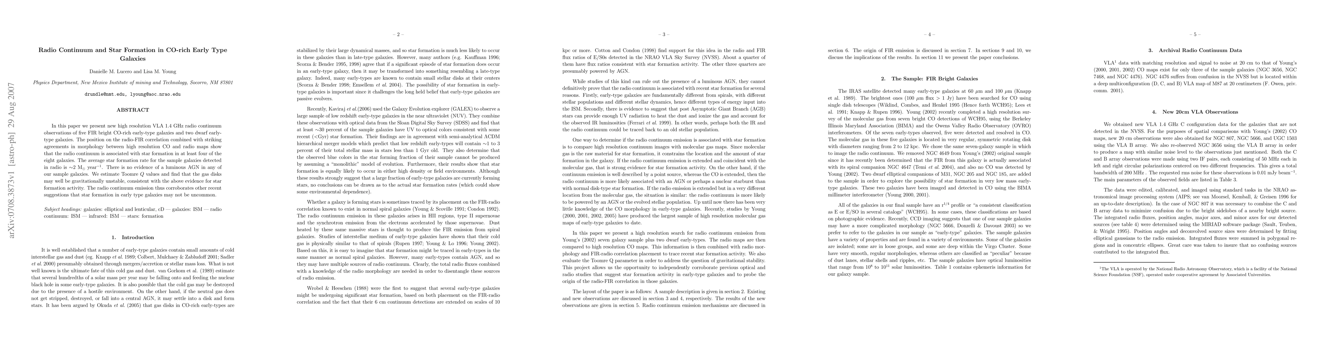 This study uses high-resolution VLA observations to show that radio continuum emission in CO-rich early-type galaxies correlates with star formation, with an average star formation rate of 2 solar masses per year. There is no evidence of a luminous AGN, suggesting star formation is driven by gravitational instability in the gas disks.