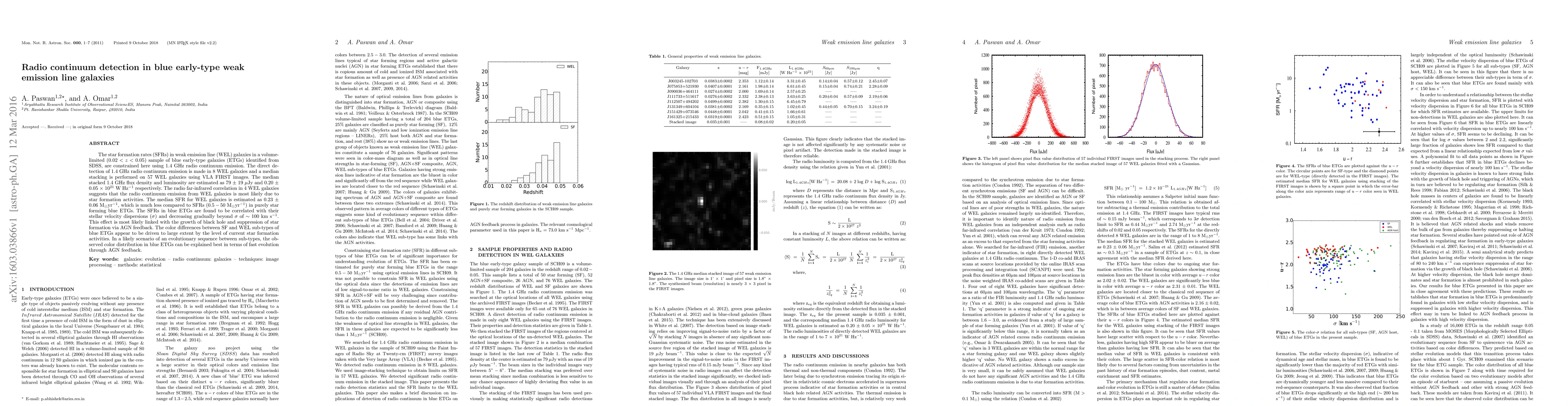 This study uses 1.4 GHz radio continuum emission to estimate star formation rates (SFRs) in weak emission line galaxies within blue early-type galaxies, finding a median SFR of 0.23 $\pm$ 0.06 M$_{\odot}$yr$^{-1}$. The results suggest that radio emission is due to star formation, with SFRs declining with increasing stellar velocity dispersion, likely due to AGN feedback.