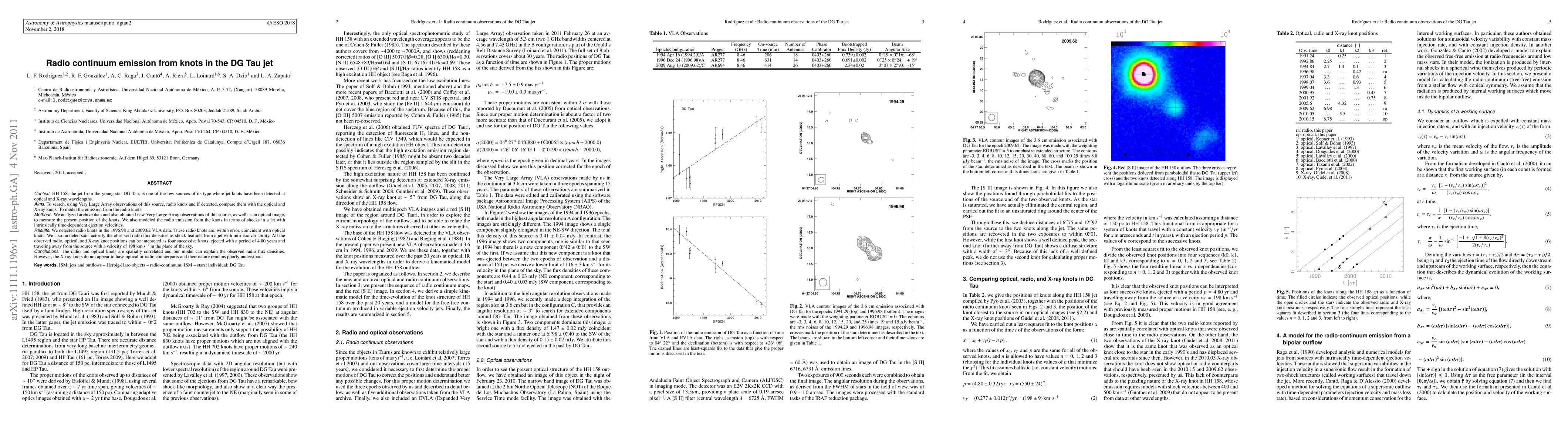 Researchers detected radio knots in the DG Tau jet and successfully modeled their emission as shock features from a jet with intrinsic variability, confirming spatial correlation with optical knots. However, X-ray knots lack counterparts and their nature remains poorly understood.