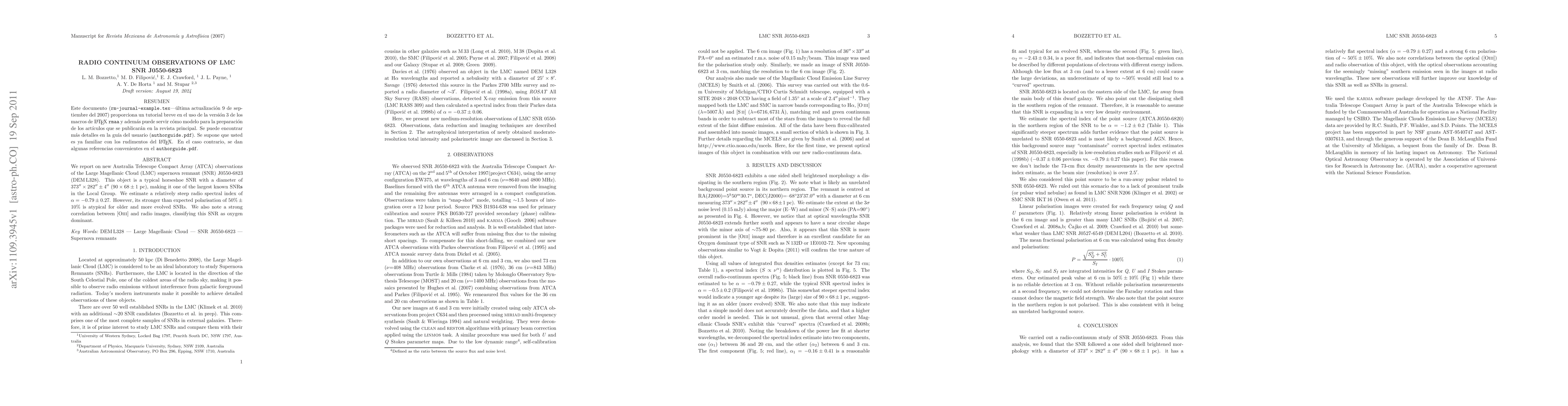 We report on new Australia Telescope Compact Array (ATCA) observations of the Large Magellanic Cloud (LMC) supernova remnant (SNR) J0550-6823 (DEM L328). This object is a typical horseshoe SNR with a diameter of 373" x 282" +- 4" (90 x 68 +- 1), making it one of the largest known SNRs in the Local Group. We estimate a relatively steep radio spectral index of alpha = -0.79 +- 0.27. However, its stronger than expected polarisation of 50% +- 10% is atypical for older and more evolved SNRs. We also note a strong correlation between [Oiii] and radio images, classifying this SNR as oxygen dominant.