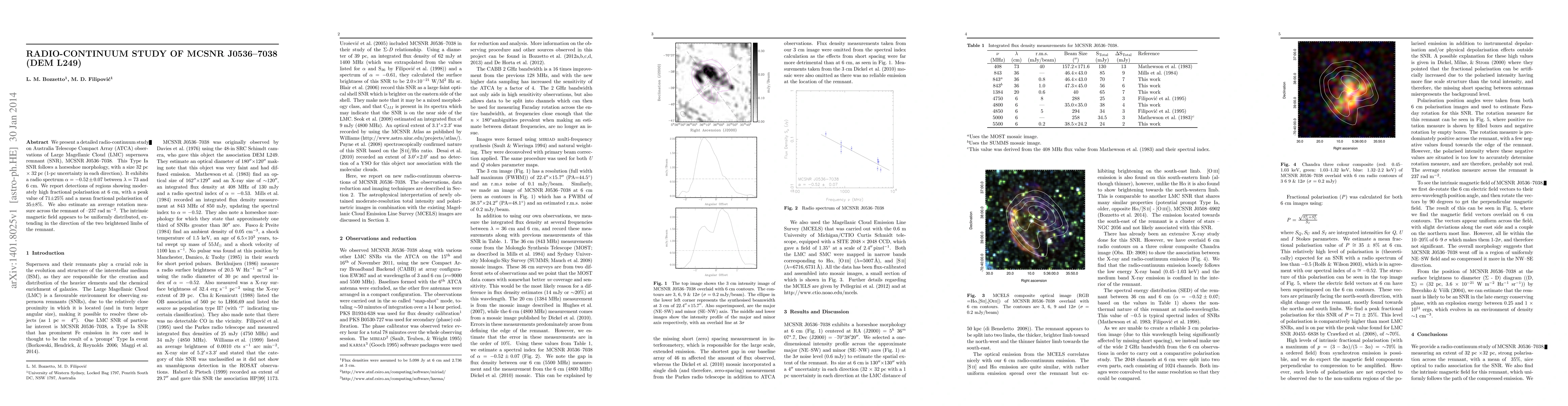 We present a detailed radio-continuum study on Australia Telescope Compact Array (ATCA) observations of Large Magellanic Cloud (LMC) supernova remnant (SNR), MCSNR J0536-7038. This Type Ia SNR follows a horseshoe morphology, with a size 32 pc $\times$ 32 pc (1-pc uncertainty in each direction). It exhibits a radio spectrum $\alpha=-0.52\pm0.07$ between $\lambda = 73$ and 6 cm. We report detections of regions showing moderately high fractional polarisation at 6 cm, with a peak value of 71$\pm$25% and a mean fractional polarisation of 35$\pm$8%. We also estimate an average rotation measure across the remnant of -237 rad m$^{-2}$. The intrinsic magnetic field appears to be uniformly distributed, extending in the direction of the two brightened limbs of the remnant.
