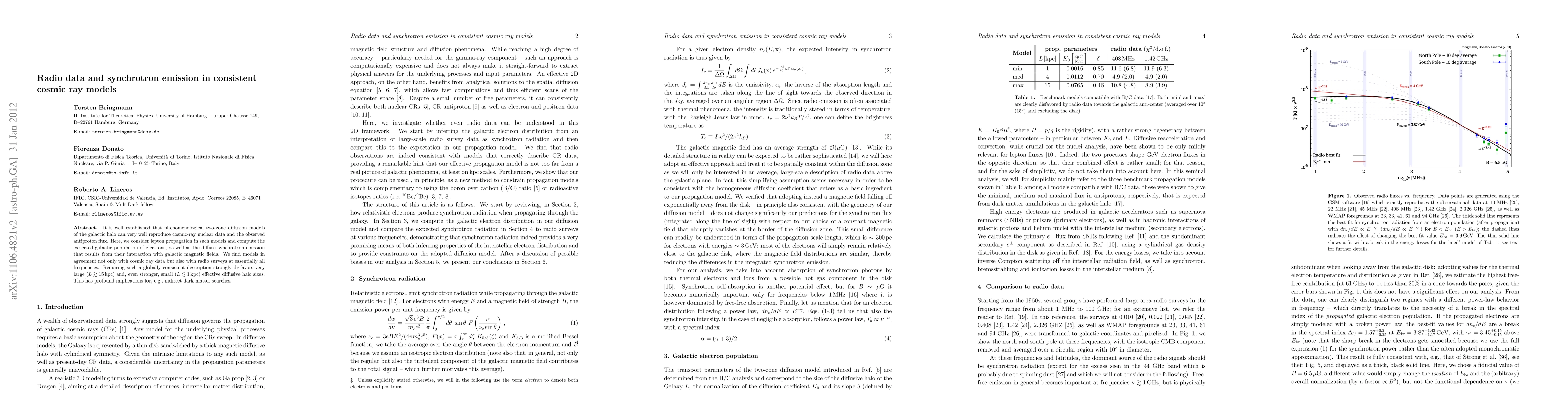 It is well established that phenomenological two-zone diffusion models of the galactic halo can very well reproduce cosmic-ray nuclear data and the observed antiproton flux. Here, we consider lepton propagation in such models and compute the expected galactic population of electrons, as well as the diffuse synchrotron emission that results from their interaction with galactic magnetic fields. We find models in agreement not only with cosmic ray data but also with radio surveys at essentially all frequencies. Requiring such a globally consistent description strongly disfavors very large ($L\gtrsim 15$ kpc) and, even stronger, small ($L\lesssim 1$ kpc) effective diffusive halo sizes. This has profound implications for, e.g., indirect dark matter searches.