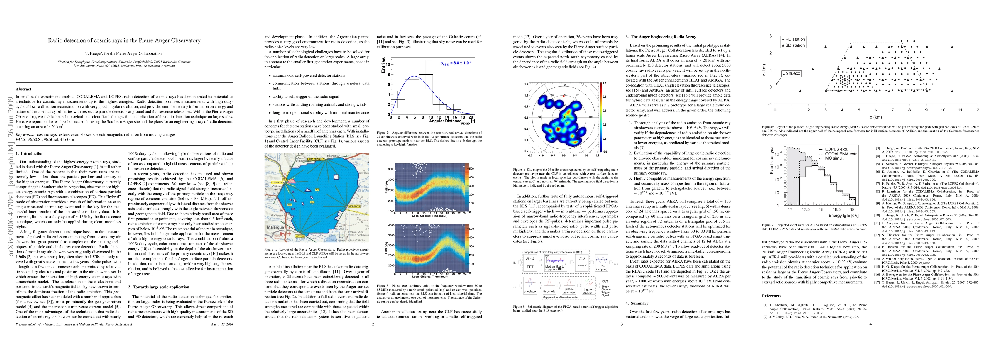 The Pierre Auger Observatory explores the large-scale application of radio detection for cosmic ray measurements, demonstrating its potential for high-resolution direction reconstruction and complementary energy information. Initial results from the Southern Auger site and plans for an expansive radio detector array are reported.