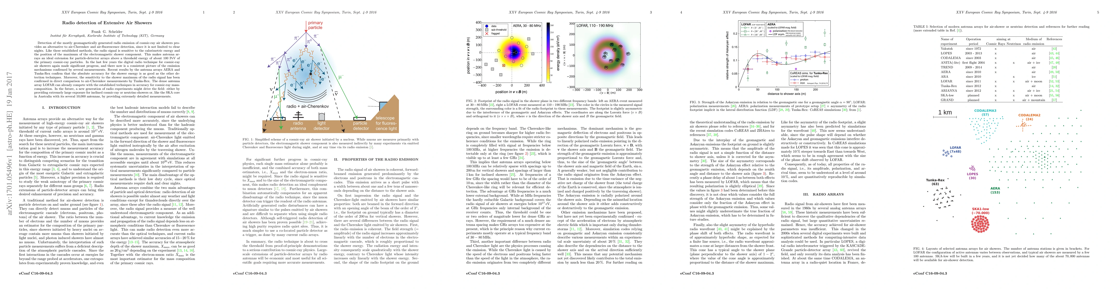 This paper discusses the detection of geomagnetically generated radio emissions from cosmic-ray air showers, presenting it as a viable alternative to air-Cherenkov and air-fluorescence methods. Recent advancements in digital radio techniques have shown that radio detection can match the accuracy of other methods in determining shower energy and position, with arrays like AERA and Tunka-Rex leading the way. Future large-scale radio experiments, such as the SKA core, promise to further enhance the precision and scope of cosmic-ray and neutrino studies.