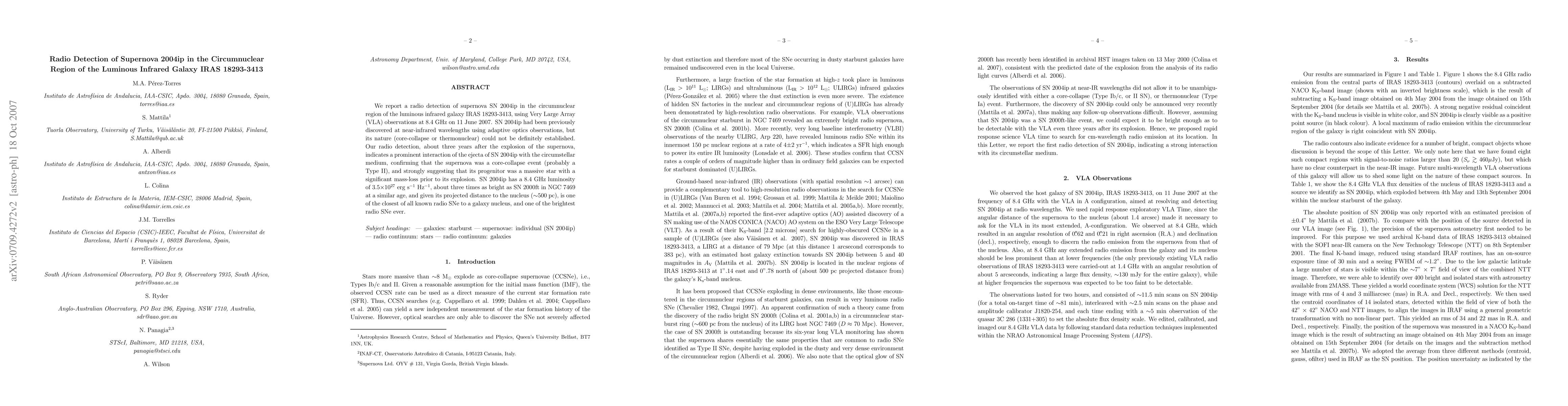 We report a radio detection of supernova SN 2004ip in the circumnuclear region of the luminous infrared galaxy IRAS 18293-3413, using Very Large Array (VLA) observations at 8.4 GHz on 11 June 2007. SN 2004ip had been previously discovered at near-infrared wavelengths using adaptive optics observations, but its nature (core-collapse or thermonuclear) could not be definitely established. Our radio detection, about three years after the explosion of the supernova, indicates a prominent interaction of the ejecta of SN 2004ip with the circumstellar medium, confirming that the supernova was a core-collapse event (probably Type II), and thus strongly suggesting that its progenitor was a massive star with a significant mass-loss prior to its explosion. SN 2004ip has a 8.4 GHz luminosity of 3.5E27 erg/s/Hz, about twice as bright as SN 2000ft in NGC 7469 at a similar age, and given its projected distance to the nucleus (~500 pc), is one of the closest of all known radio SNe to a galaxy nucleus, and one of the brightest radio SNe ever.