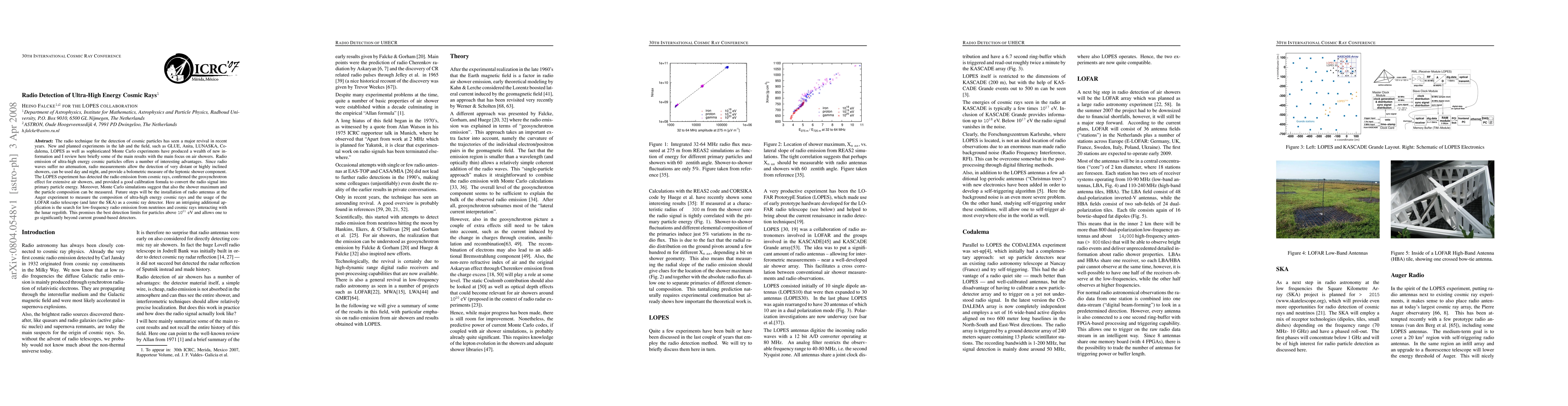 This paper reviews recent advancements in radio detection techniques for ultra-high energy cosmic rays, highlighting the LOPES experiment's success in detecting radio emissions and confirming the geosynchrotron effect. Future plans include integrating radio antennas with the Auger experiment and utilizing LOFAR and SKA telescopes for enhanced detection capabilities, including potential low-frequency radio emissions from neutrinos and cosmic rays interacting with the lunar surface.