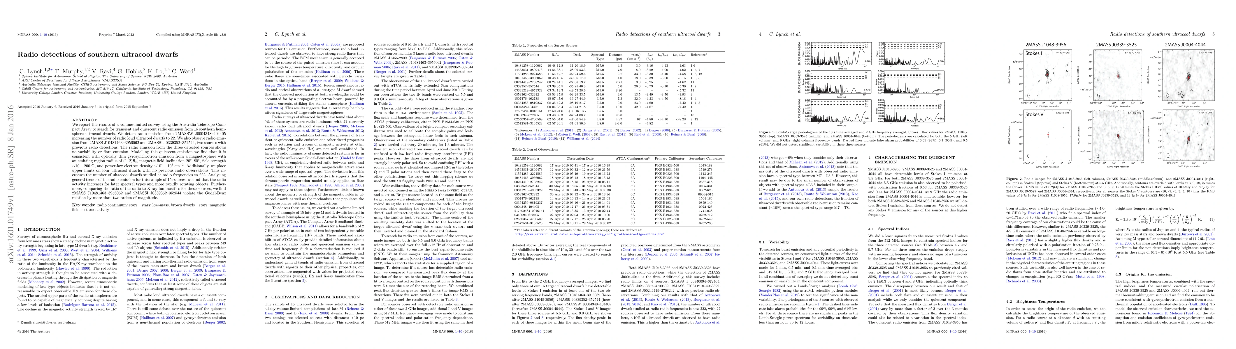 This study reports radio detections from three southern ultracool dwarfs using the Australia Telescope Compact Array, increasing the known radio-loud ultracool dwarfs to 22. The detected radio emissions show no variability and are modeled as optically thin gyrosynchrotron emission from magnetospheres. The findings suggest a correlation between radio activity and later spectral types and faster rotation, while two sources deviate significantly from the radio-X-ray luminosity correlation.