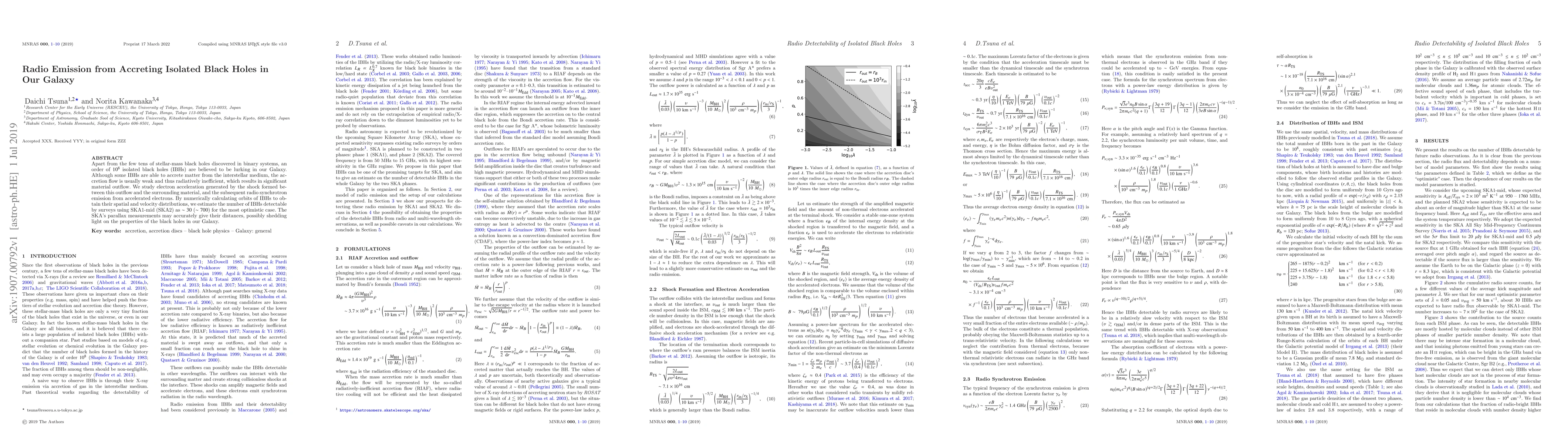This paper investigates radio emissions from isolated black holes (IBHs) in our Galaxy that may accrete matter, leading to electron acceleration and radio synchrotron emission. The study estimates that SKA1-mid (SKA2) could detect around 30 (700) IBHs, with potential parallax measurements aiding in understanding these elusive black holes.