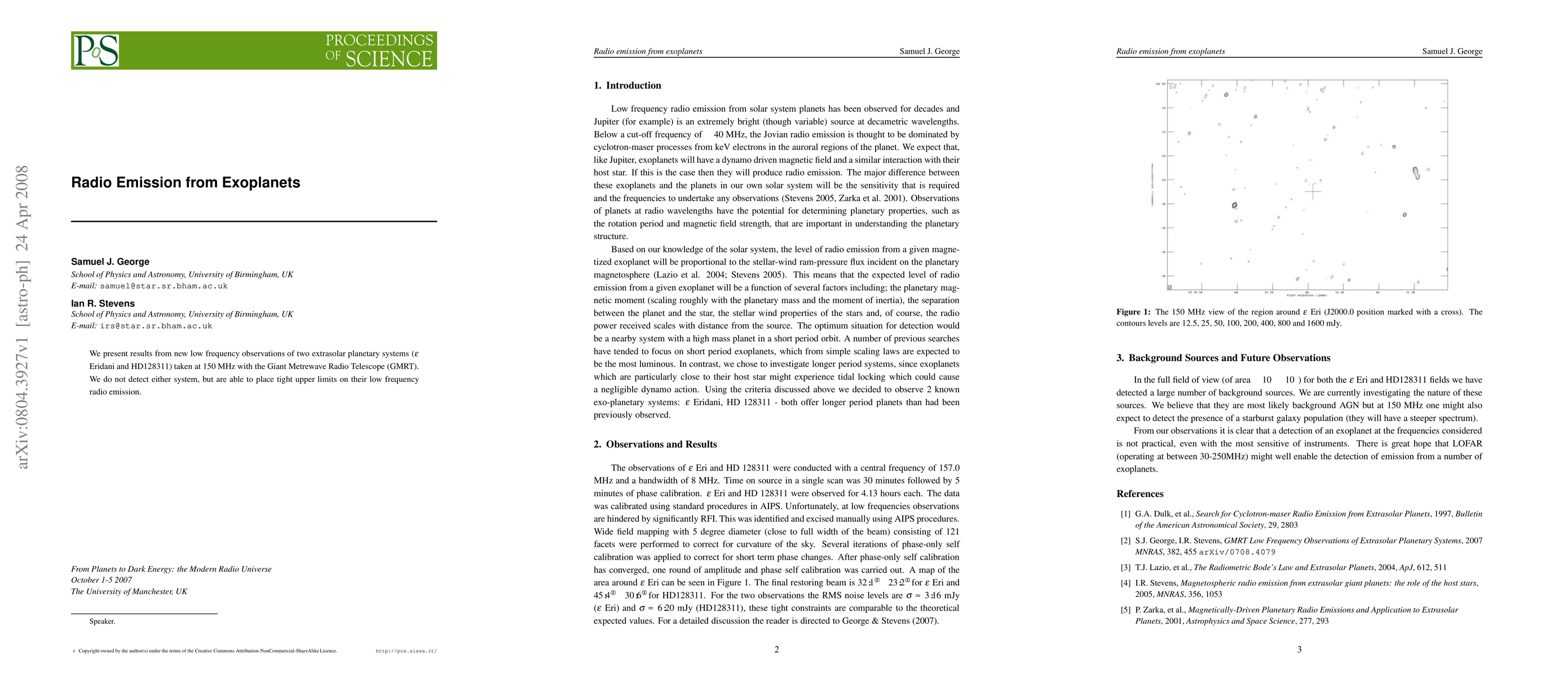 The study conducted low-frequency observations of exoplanets around Epsilon Eridani and HD128311 using the GMRT, finding no detectable radio emissions but establishing stringent upper limits on their potential low-frequency radio emissions.