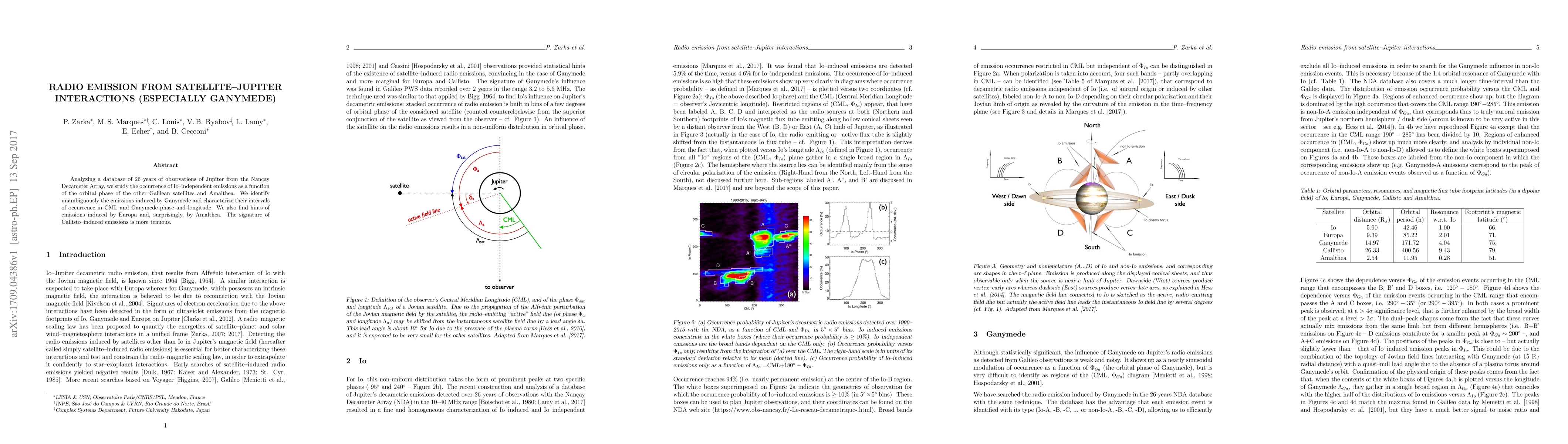 This study analyzes 26 years of Jupiter observations to identify radio emissions independent of Io, focusing on Ganymede's influence. The research characterizes Ganymede-induced emissions and finds hints of Europa and Amalthea's contributions, while Callisto's signature remains weak.