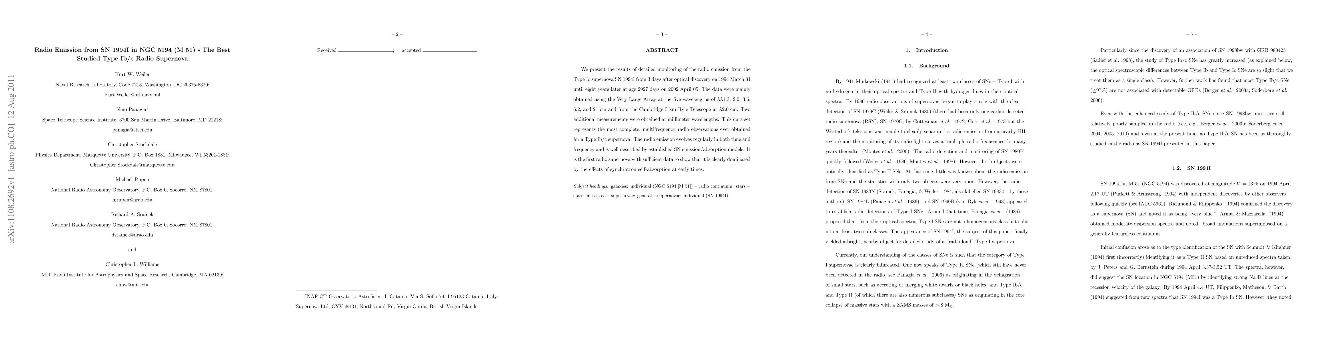 We present the results of detailed monitoring of the radio emission from the Type Ic supernova SN 1994I from 3 days after optical discovery on 1994 March 31 until eight years later at age 2927 days on 2002 April 05. The data were mainly obtained using the Very Large Array at the five wavelengths, 1.3, 2.0, 3.6, 6.2, and 21 cm, and from the Cambridge 5 km Ryle Telescope at 2.0 cm. Two additional measurements were obtained at millimeter wavelengths. This data set represents the most complete, multifrequency radio observations ever obtained for a Type Ib/c supernova. The radio emission evolves regularly in both time and frequency and is well described by established SN emission/absorption models. It is the first radio supernova with sufficient data to show that it is clearly dominated by the effects of synchrotron self-absorption at early times.