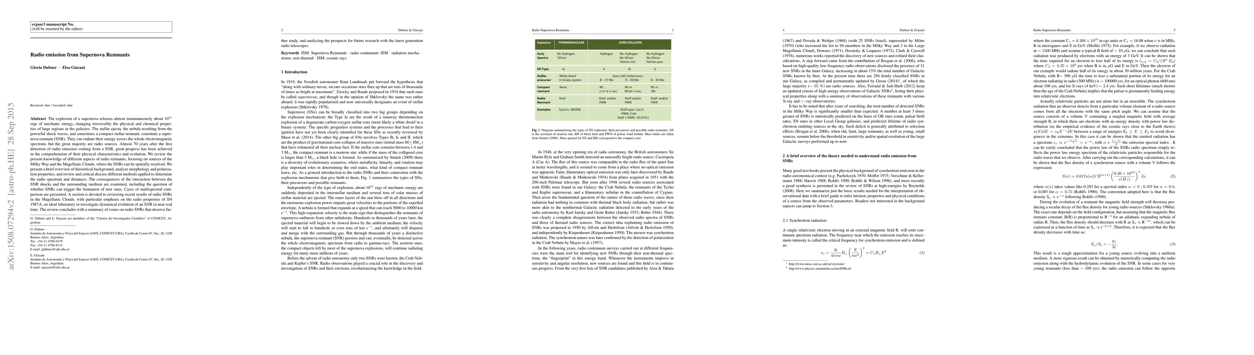 This paper reviews the current understanding of radio emission from supernova remnants, including their physical characteristics, evolution, and properties in the Milky Way and Magellanic Clouds. Key findings include insights into the interaction between SNR shocks and surrounding media, triggering new star formation, and future research prospects with advanced radio telescopes.