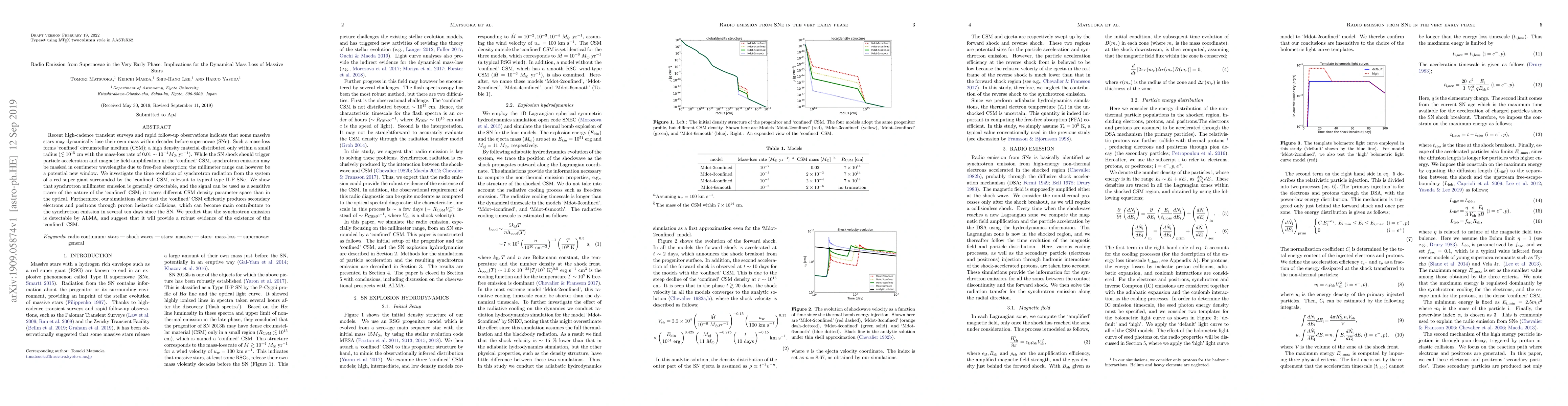 Recent high-cadence transient surveys and rapid follow-up observations indicate that some massive stars may dynamically lose their own mass within decades before supernovae (SNe). Such a mass-loss forms `confined' circumstellar medium (CSM); a high density material distributed only within a small radius ($\lesssim 10^{15}$ cm with the mass-loss rate of 0.01 $\sim 10^{-4} M_\odot$ yr$^{-1}$). While the SN shock should trigger particle acceleration and magnetic field amplification in the `confined' CSM, synchrotron emission may be masked in centimeter wavelengths due to free-free absorption; the millimeter range can however be a potential new window. We investigate the time evolution of synchrotron radiation from the system of a red super giant surrounded by the `confined' CSM, relevant to typical type II-P SNe. We show that synchrotron millimeter emission is generally detectable, and the signal can be used as a sensitive tracer of the nature of the `confined' CSM; it traces different CSM density parameter space than in the optical. Furthermore, our simulations show that the `confined' CSM efficiently produces secondary electrons and positrons through proton inelastic collisions, which can become main contributors to the synchrotron emission in several ten days since the SN. We predict that the synchrotron emission is detectable by ALMA, and suggest that it will provide a robust evidence of the existence of the `confined' CSM.