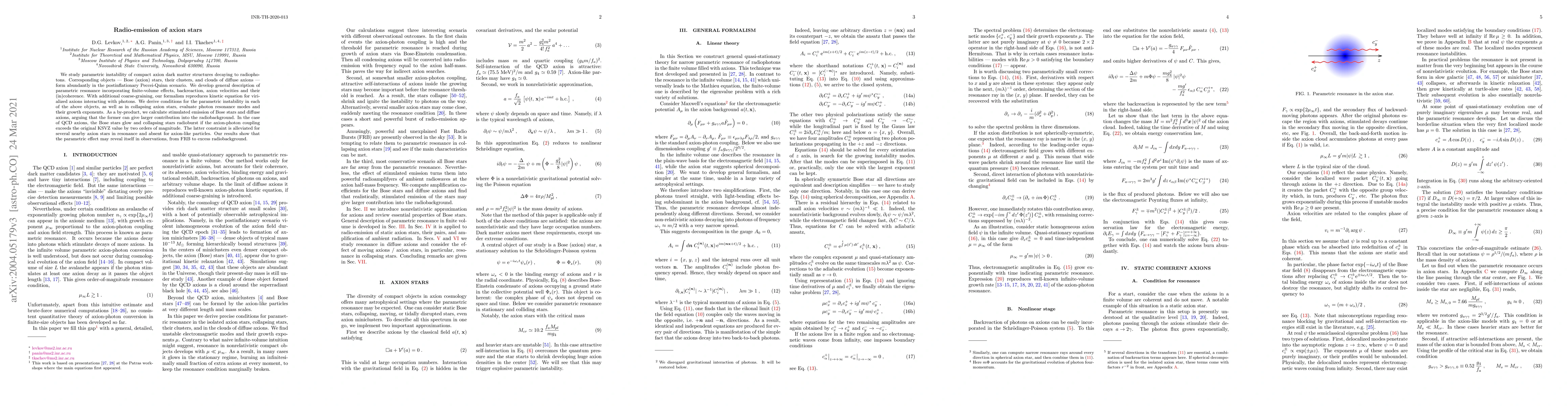 This paper investigates the parametric instability of axion dark matter structures, specifically Bose stars, leading to radiophoton emission. It develops a comprehensive formalism for parametric resonance, detailing conditions for instability and photon emission, and suggests that Bose stars could contribute significantly to the radiobackground, especially if axion-photon coupling is sufficiently strong.