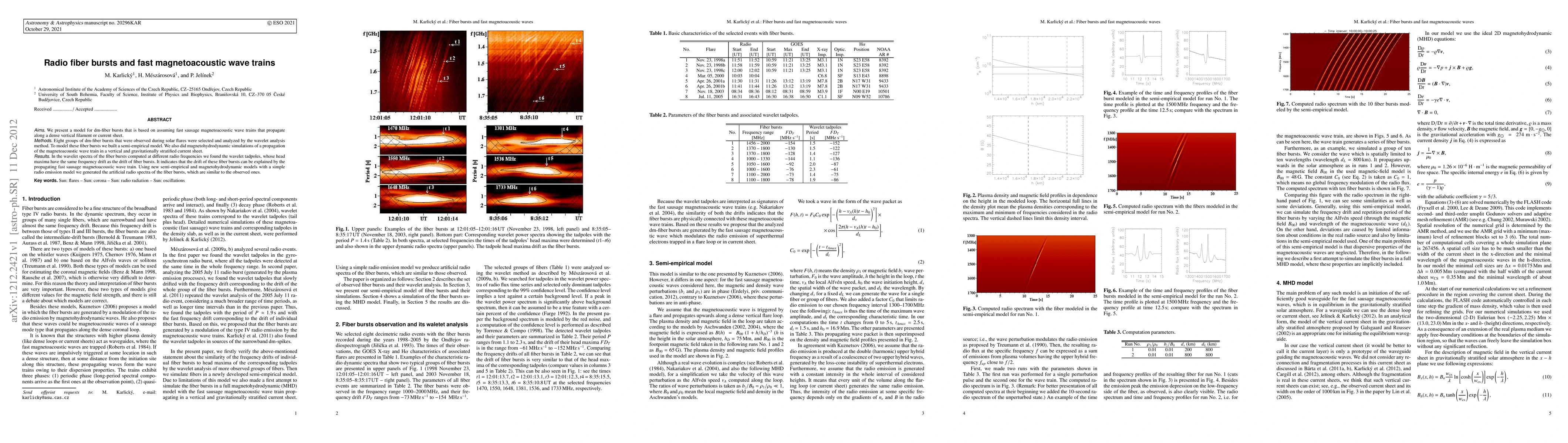 This paper models dm-fiber bursts during solar flares using fast magnetoacoustic wave trains in vertical filaments, and validates the model through wavelet analysis and magnetohydrodynamic simulations. The findings suggest that the observed frequency drift of fiber bursts correlates with the propagating magnetoacoustic wave train.