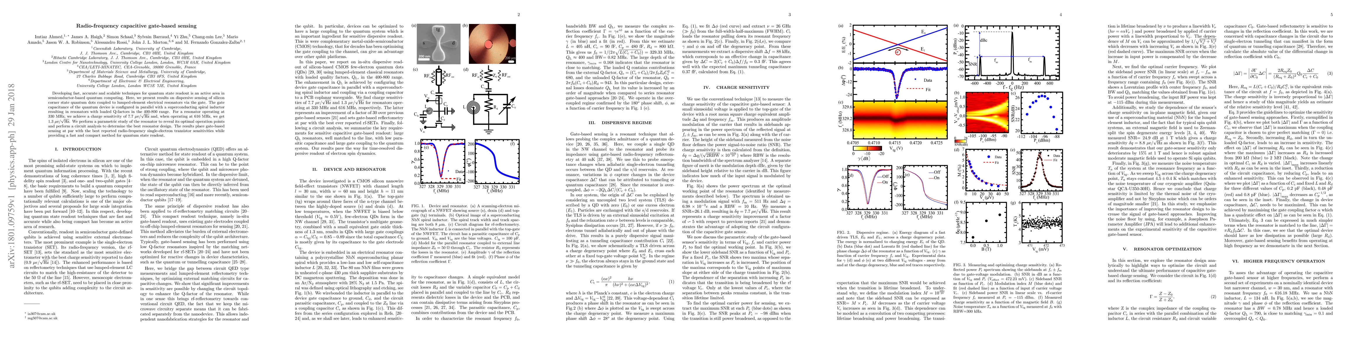 Developing fast, accurate and scalable techniques for quantum state readout is an active area in semiconductor-based quantum computing. Here, we present results on dispersive sensing of silicon corner state quantum dots coupled to lumped-element electrical resonators via the gate. The gate capacitance of the quantum device is configured in parallel with a superconducting spiral inductor resulting in resonators with loaded Q-factors in the 400-800 range. For a resonator operating at 330 MHz, we achieve a charge sensitivity of 7.7 $\mu$e$/\sqrt{\text{Hz}}$ and, when operating at 616 MHz, we get 1.3 $\mu$e$/\sqrt{\text{Hz}}$. We perform a parametric study of the resonator to reveal its optimal operation points and perform a circuit analysis to determine the best resonator design. The results place gate-based sensing at par with the best reported radio-frequency single-electron transistor sensitivities while providing a fast and compact method for quantum state readout.