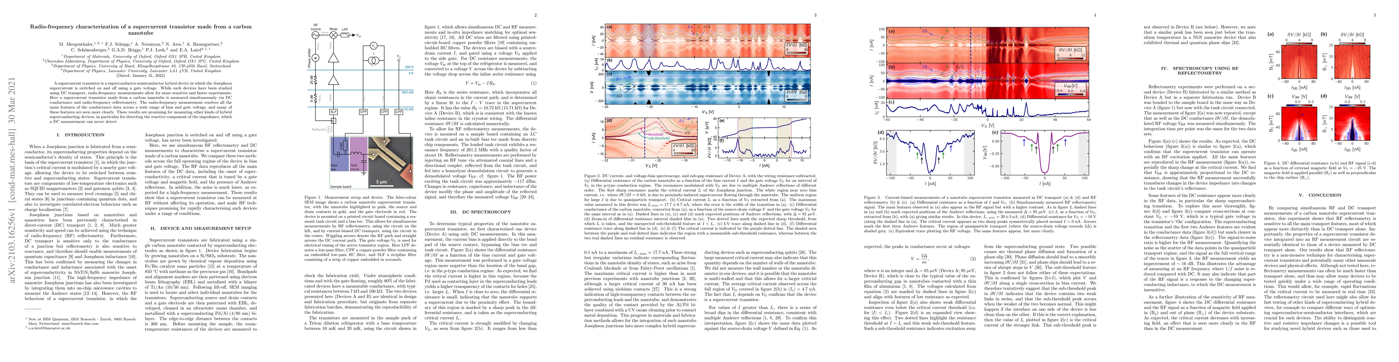 This paper investigates a supercurrent transistor made from a carbon nanotube using both DC conductance and radio-frequency reflectometry. Radio-frequency measurements reveal more detailed features than DC transport, promising enhanced detection capabilities for hybrid superconducting devices.