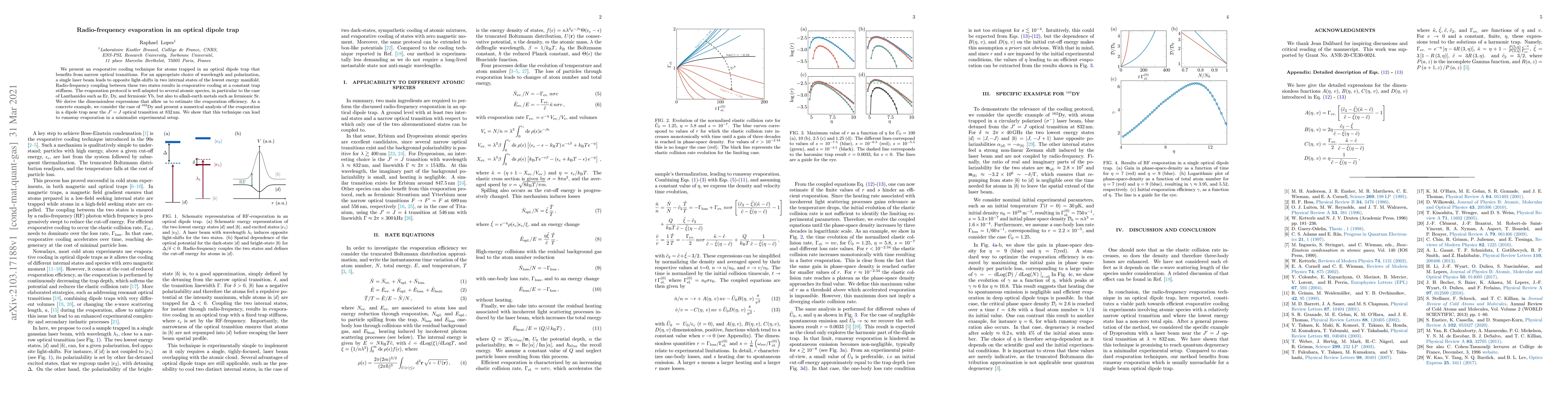 This paper introduces a radio-frequency evaporation technique for cooling atoms in an optical dipole trap, utilizing a single laser beam to achieve opposite light-shifts in two internal states. This method is effective for various atomic species, including Lanthanides and alkali-earth metals, and demonstrates high evaporation efficiency, as exemplified by numerical analysis of $^{162}$Dy near the 832 nm optical transition.