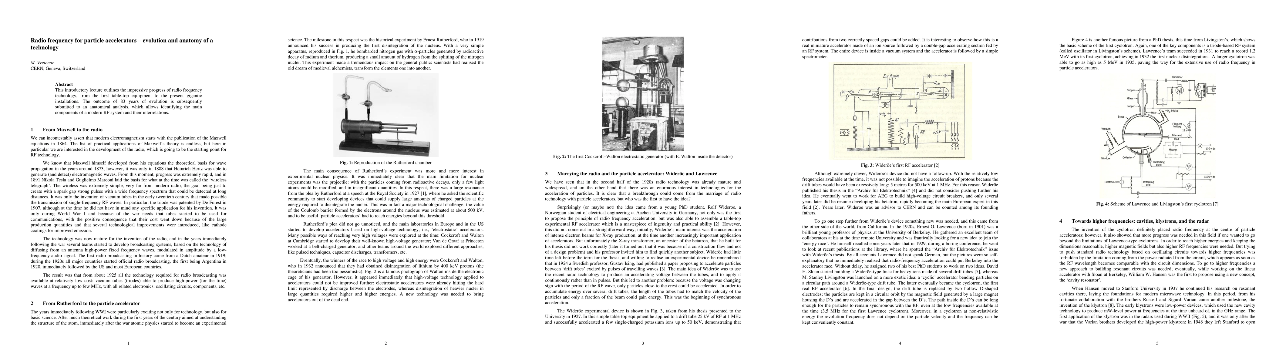 This introductory lecture outlines the impressive progress of radio frequency technology, from the first table-top equipment to the present gigantic installations. The outcome of 83 years of evolution is subsequently submitted to an anatomical analysis, which allows identifying the main components of a modern RF system and their interrelations.