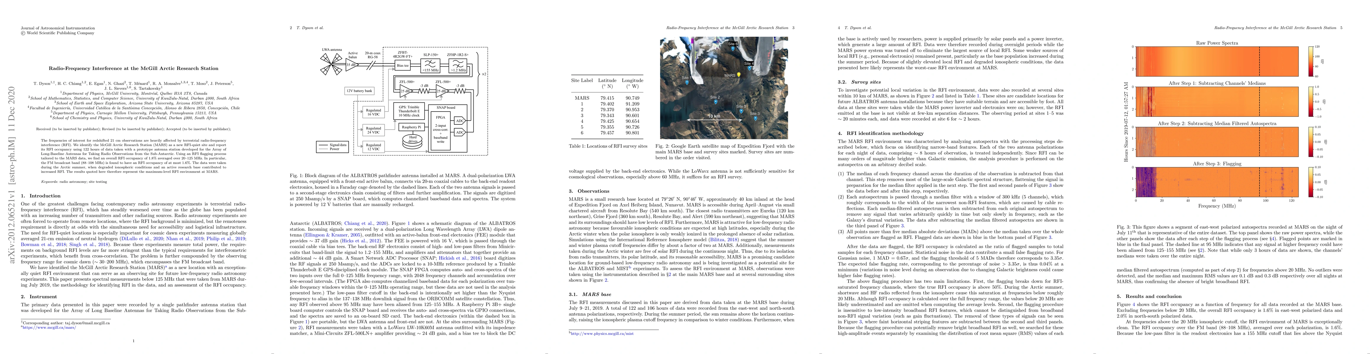 The frequencies of interest for redshifted 21 cm observations are heavily affected by terrestrial radio-frequency interference (RFI). We identify the McGill Arctic Research Station (MARS) as a new RFI-quiet site and report its RFI occupancy using 122 hours of data taken with a prototype antenna station developed for the Array of Long-Baseline Antennas for Taking Radio Observations from the Sub-Antarctic. Using an RFI flagging process tailored to the MARS data, we find an overall RFI occupancy of 1.8% averaged over 20-125 MHz. In particular, the FM broadcast band (88-108 MHz) is found to have an RFI occupancy of at most 1.6%. The data were taken during the Arctic summer, when degraded ionospheric conditions and an active research base contributed to increased RFI. The results quoted here therefore represent the maximum-level RFI environment at MARS.