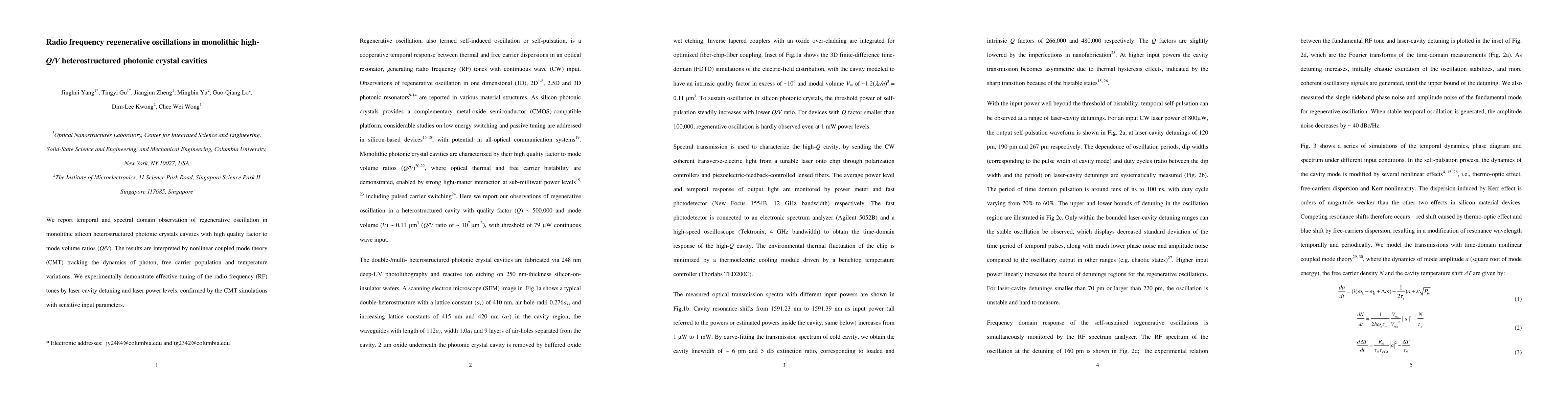 Researchers observed regenerative oscillations in high-Q/V photonic crystal cavities, demonstrating effective RF tuning through laser-cavity detuning and power levels.