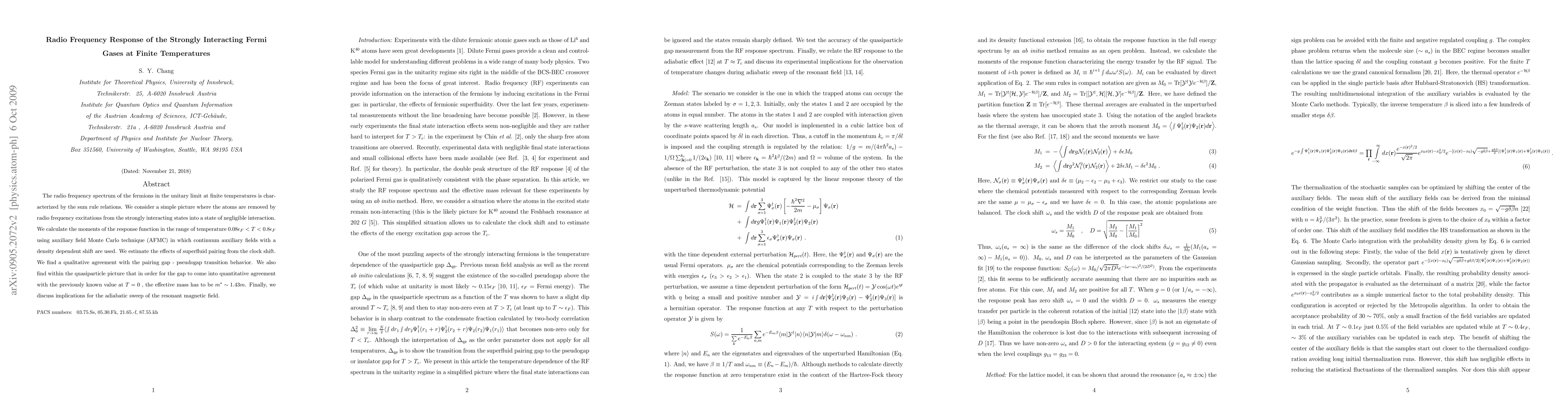 Researchers studied the radio frequency response of strongly interacting fermi gases at finite temperatures, finding a qualitative agreement with the pairing gap-pseudogap transition behavior and estimating an effective mass required for quantitative agreement with known values at T=0.