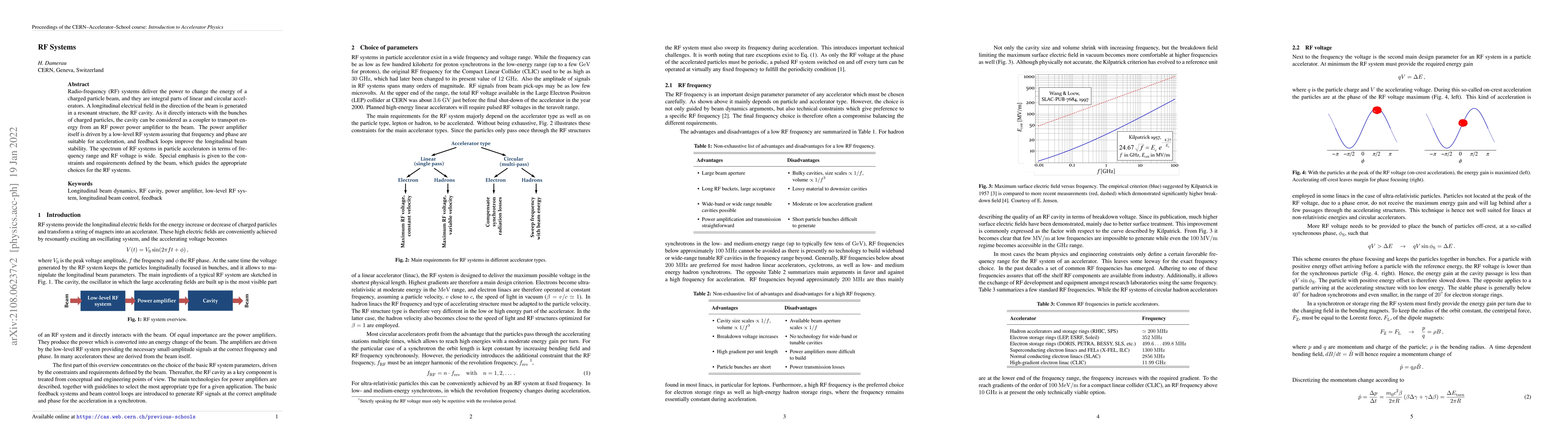 This paper discusses the role of radio-frequency (RF) systems in particle accelerators, focusing on how RF cavities generate longitudinal fields to accelerate charged particle beams. It highlights the importance of resonant structures, power amplifiers, and feedback loops in maintaining beam stability and optimizing energy transfer.