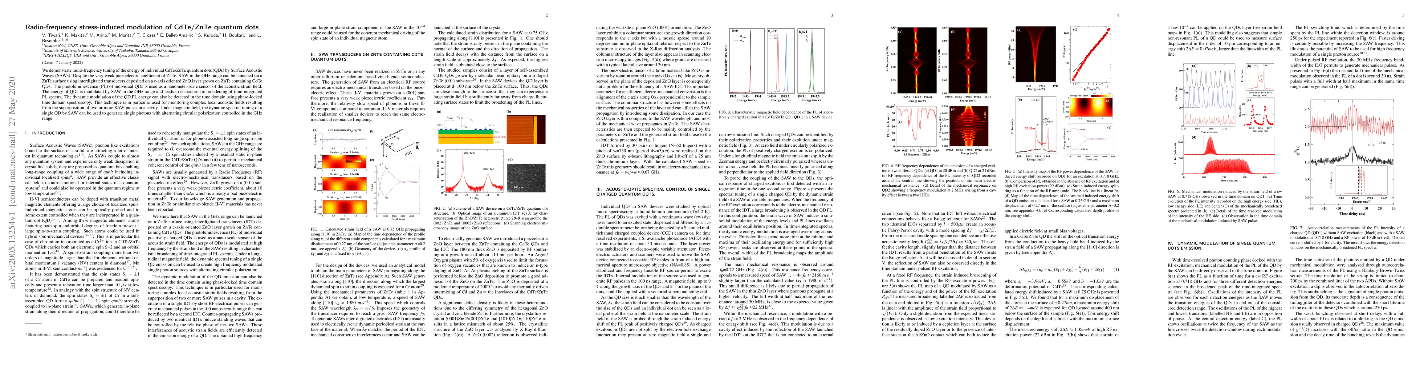 This paper demonstrates the radio-frequency tuning of CdTe/ZnTe quantum dot energy via Surface Acoustic Waves, showing modulation of photoluminescence and generation of GHz-controlled single photons with alternating polarization. The technique uses GHz SAWs launched on ZnTe via interdigitated transducers for strain field sensing.