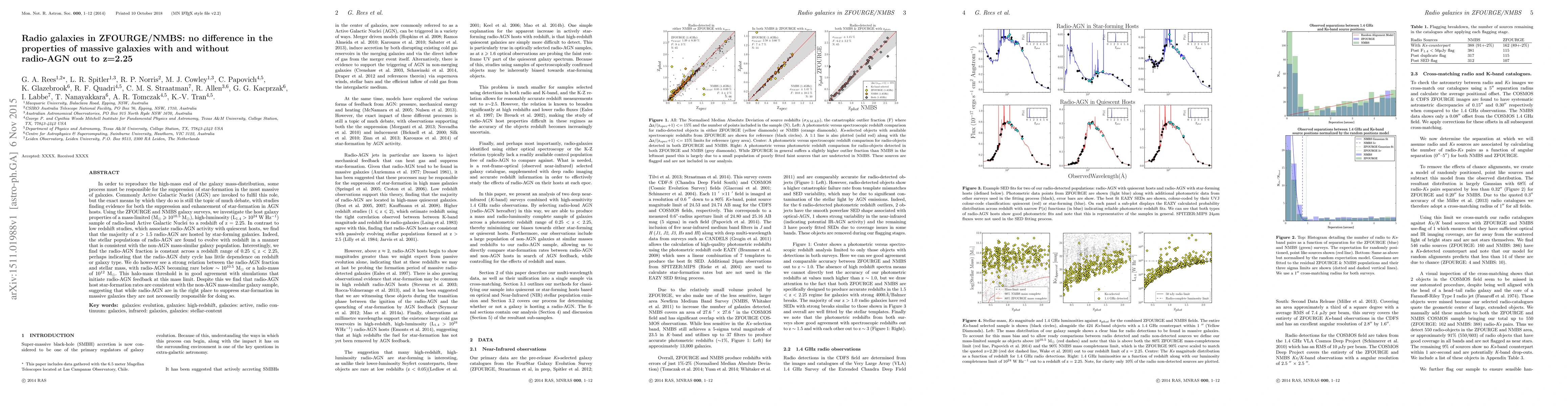 This study investigates the properties of massive galaxies hosting radio-AGN up to a redshift of 2.25, finding that they are predominantly star-forming and evolve similarly to non-AGN galaxies. Despite the radio-AGN fraction being constant across the observed redshift range, star-formation rates in radio-AGN hosts remain consistent with non-AGN galaxies, suggesting radio-AGN may not be the primary factor in suppressing star-formation in massive galaxies.