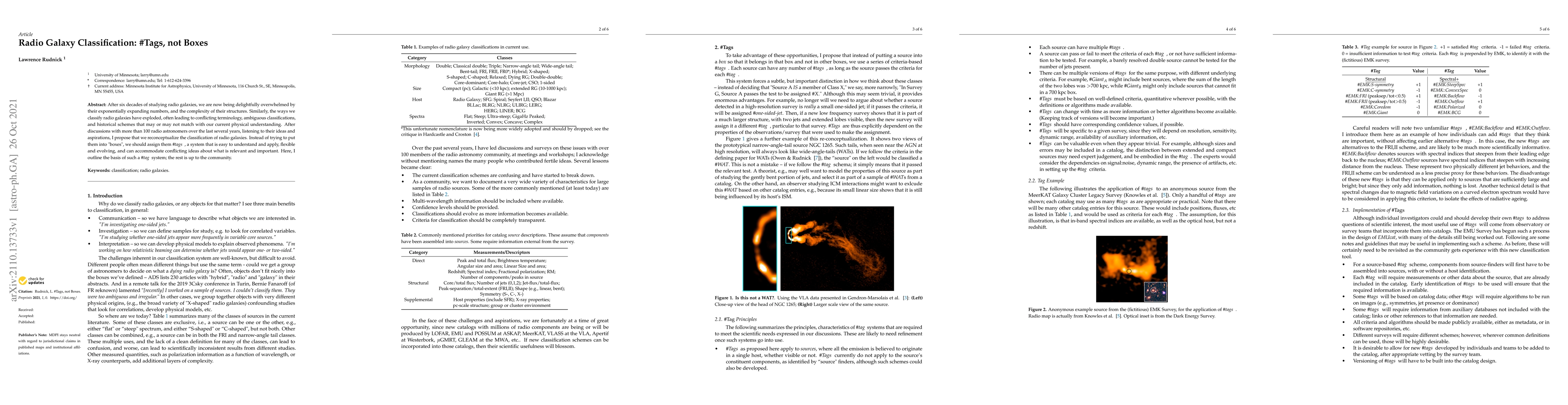After six decades of studying radio galaxies, we are now being delightfully overwhelmed by their exponentially expanding numbers, and the complexity of their structures. Similarly, the ways we classify radio galaxies have exploded, often leading to conflicting terminology, ambiguous classifications, and historical schemes that may or may not match with our current physical understanding. After discussions with more than 100 radio astronomers over the last several years, listening to their ideas and aspirations, I propose that we reconceptualize the classification of radio galaxies. Instead of trying to put them into "boxes", we should assign them #tags, a system that is easy to understand and apply, flexible and evolving, and can accommodate conflicting ideas about what is relevant and important. Here, I outline the basis of such a #tag system; the rest is up to the community.