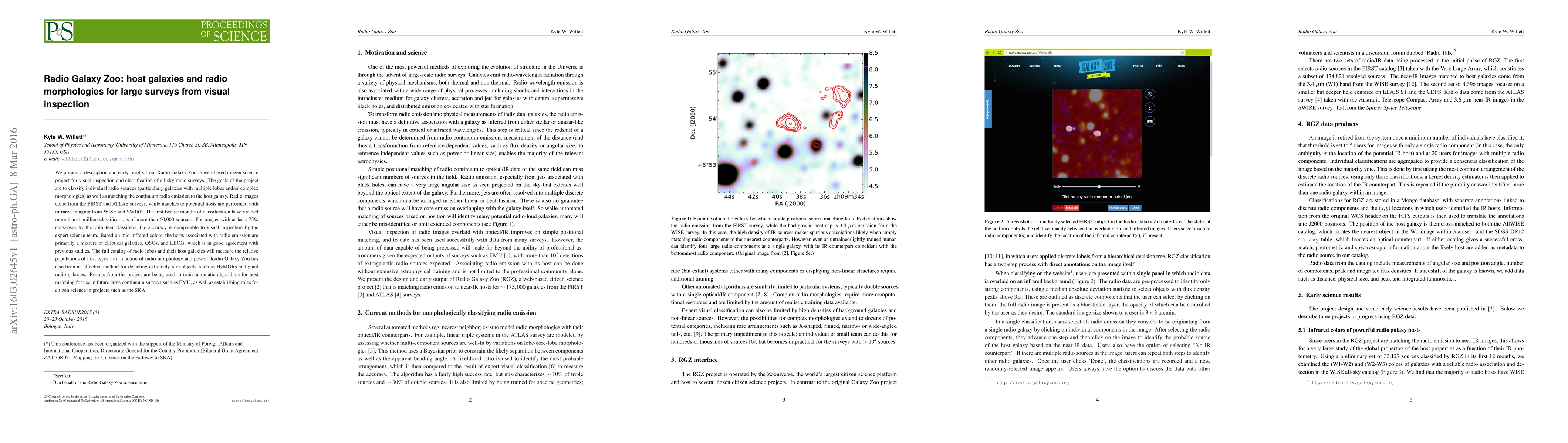 Radio Galaxy Zoo leverages citizen science to classify radio sources from all-sky surveys, achieving high accuracy through volunteer consensus. The project identifies host galaxies for radio emissions, primarily elliptical galaxies, QSOs, and LIRGs, and trains automatic algorithms for future large-scale surveys.