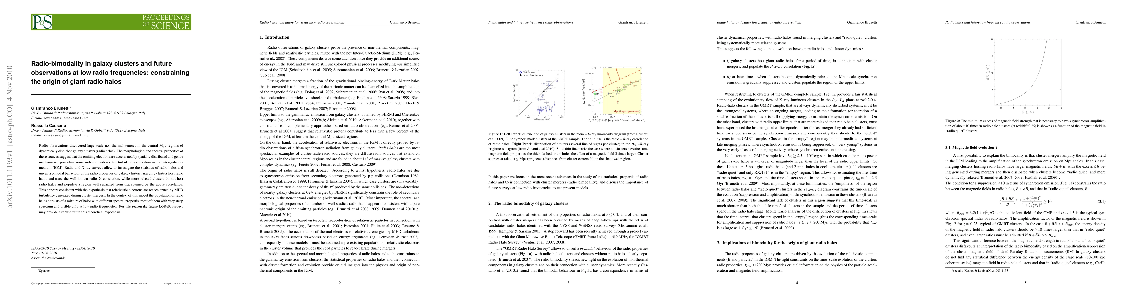 This paper discusses the discovery of radio halos in dynamically disturbed galaxy clusters, suggesting they are evidence of turbulent acceleration in the inter-galactic medium. Future low-frequency observations, such as those from LOFAR, are crucial to test the hypothesis that these radio halos are reaccelerated by turbulence generated during cluster mergers.